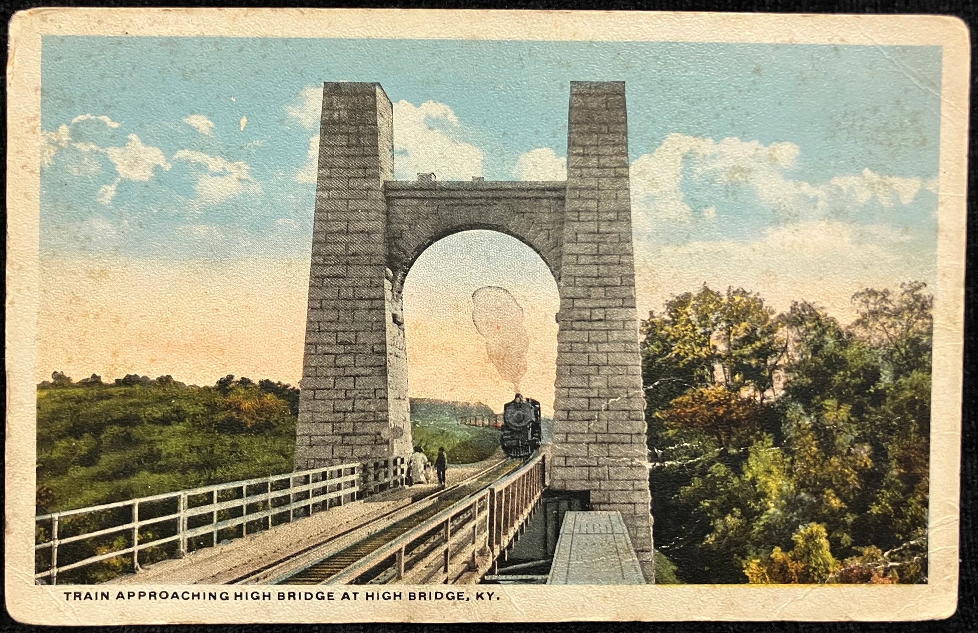 On front: Train Approaching High Bridge at High Bridge, KY.