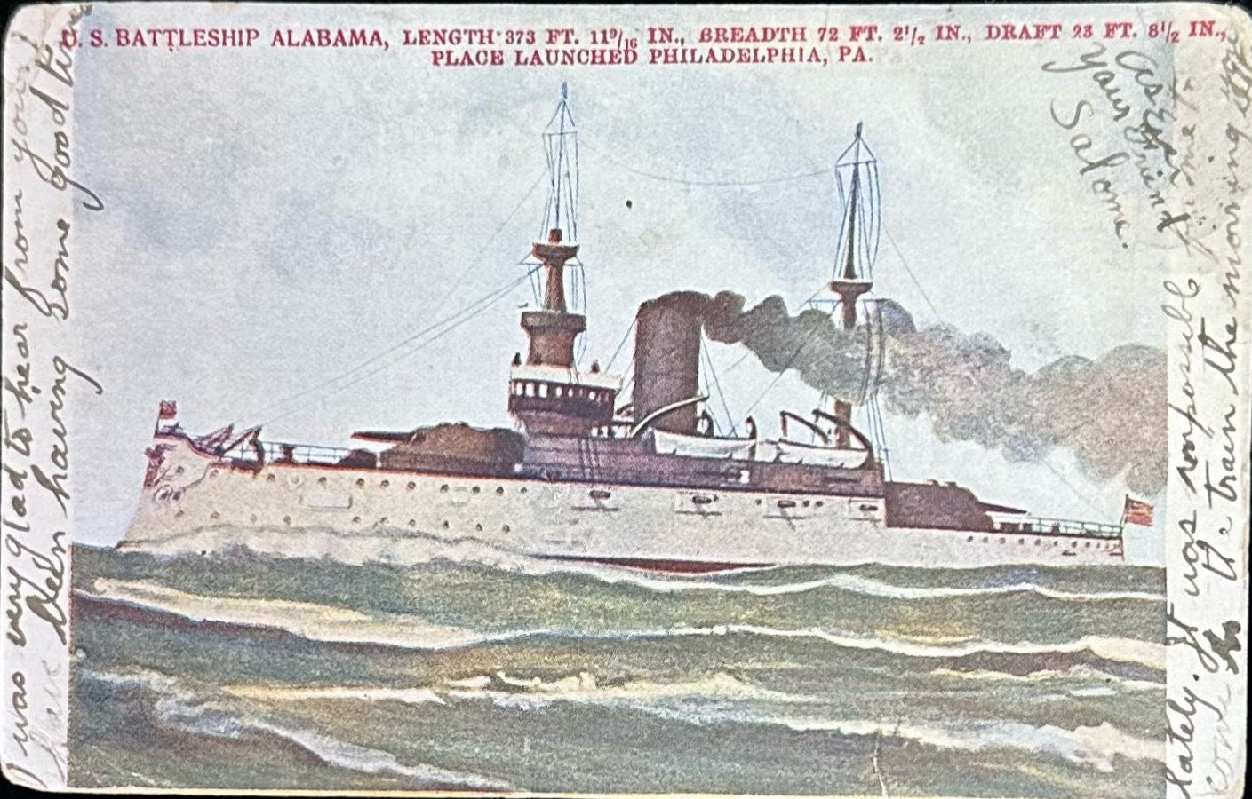 U.S. Battleship Alabama - Place Launched Philadelphia, Pennsylvania - 1908 Postcard