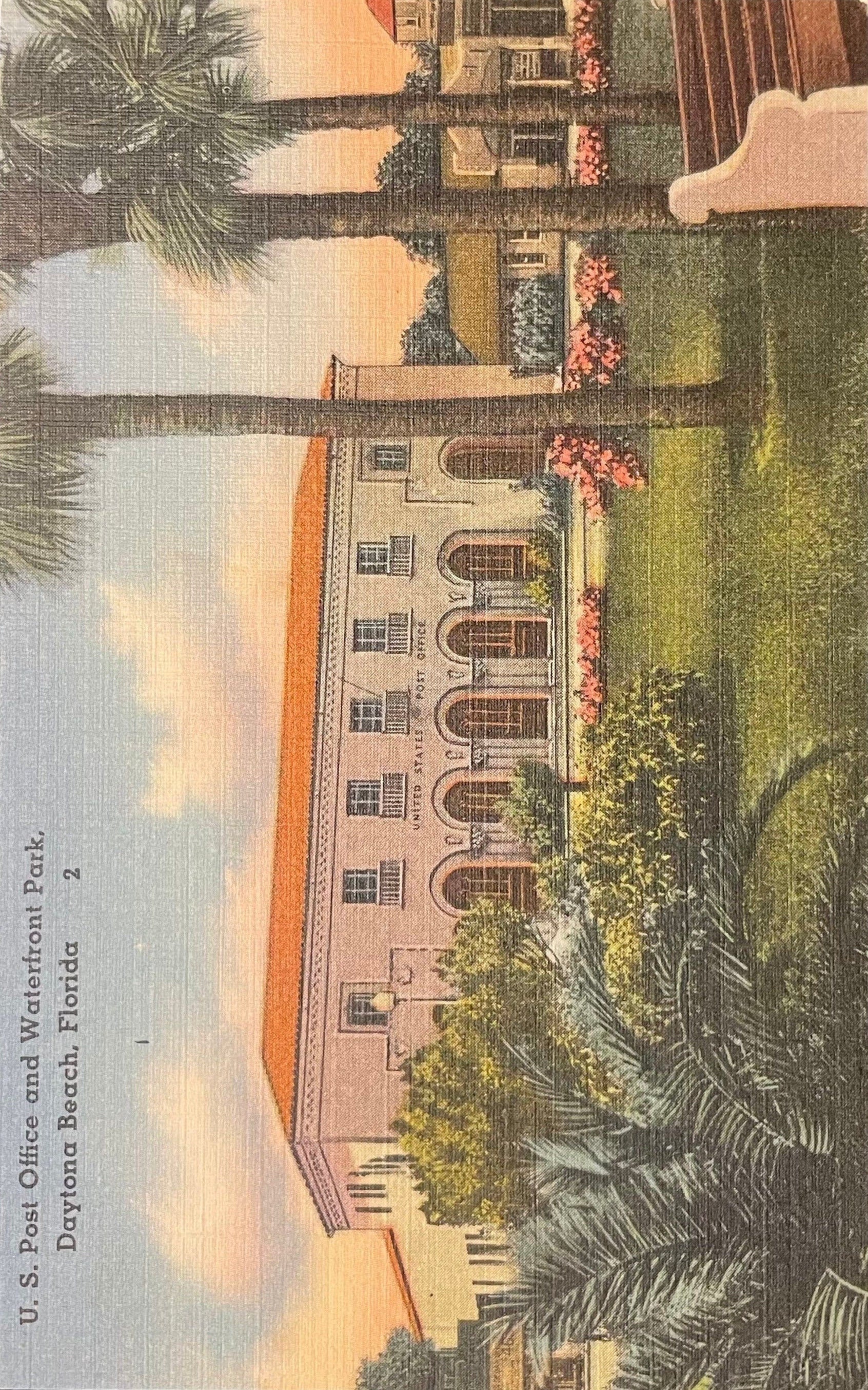U.S. Post Office and Waterfront Park - Daytona Beach, Florida - Vintage Postcard