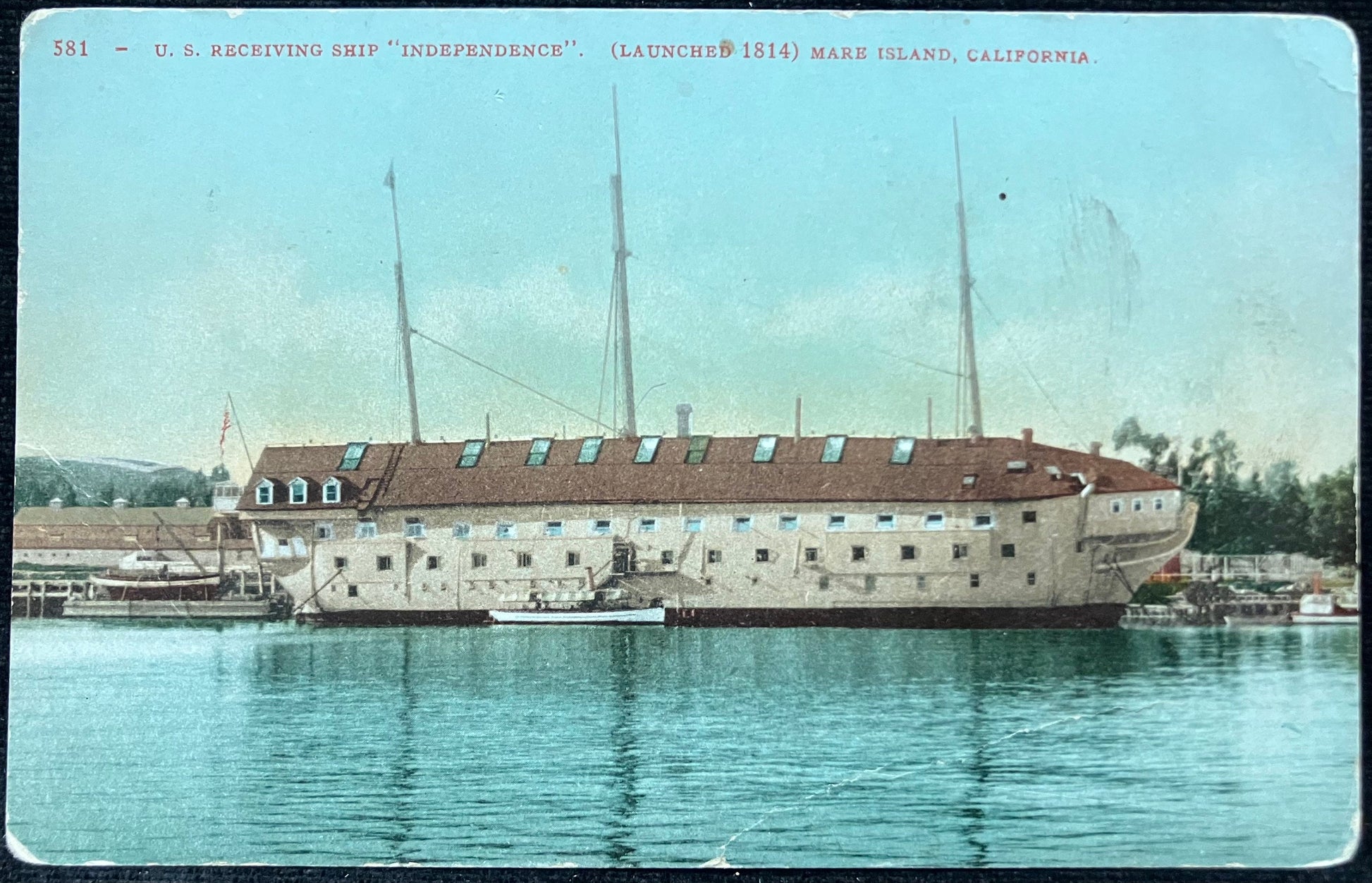 On front: U. S. Receiving Ship “Independence”. (Launched 1814) Mare Island, California