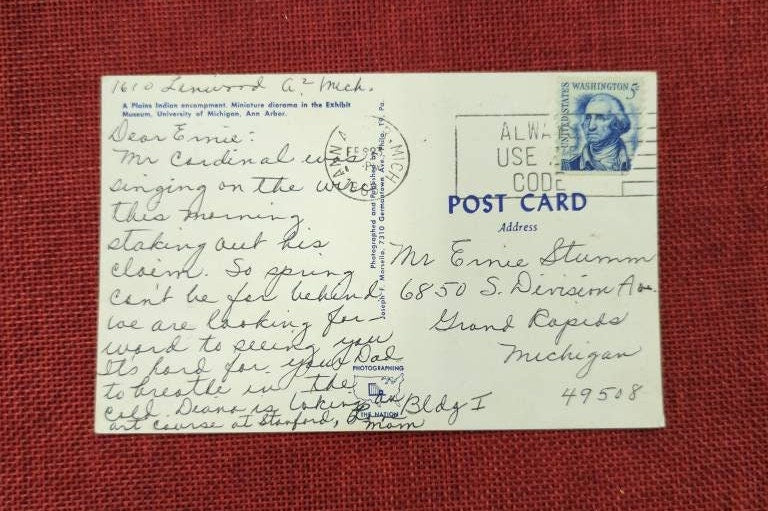 Mailed on February 23, 1968, from Ann Arbor, Michigan with a blue 5-cent George Washington stamp
