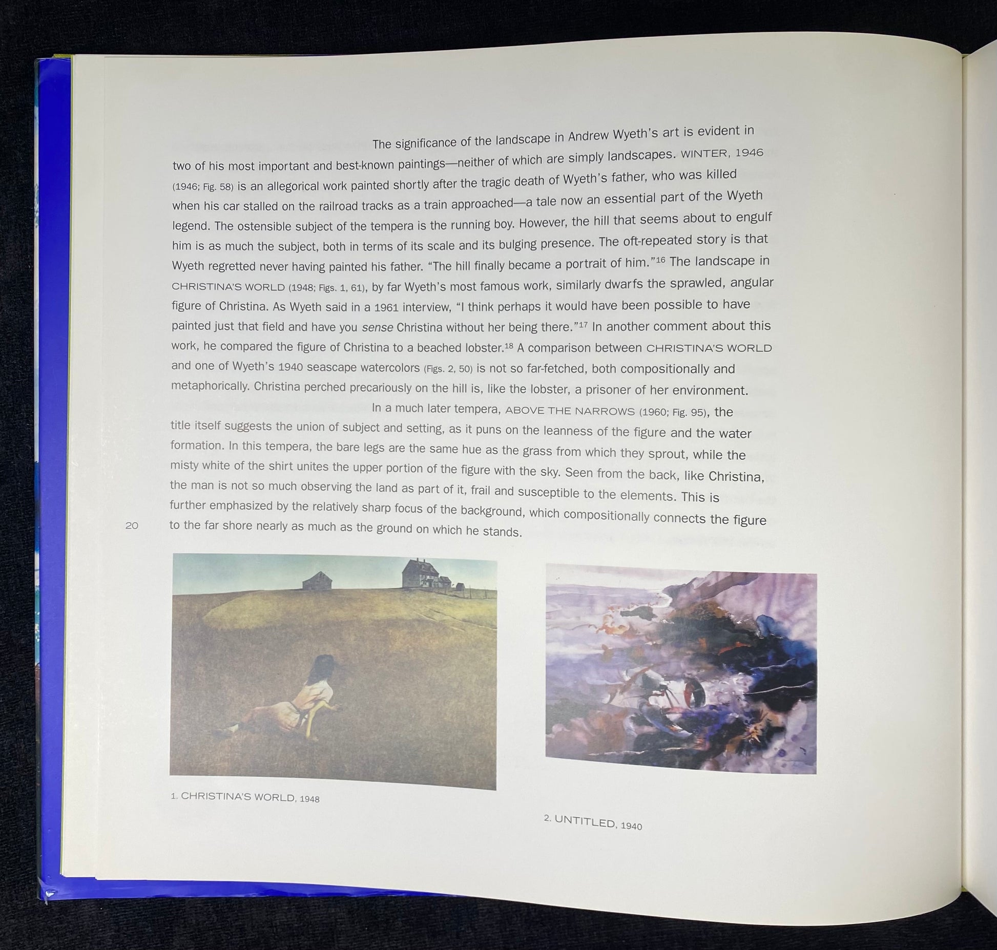 This beautiful Andrew Wyeth Art book is perfect table top entertainment . Filled with stunningly intricate paintings and background information on the artist Wyeth, the book would appeal to a diverse audience. The wild natural art with vibrant colors and realistic scenes draws out the naturalist in anyone paging through this book.. This copy is in excellent condition. The jacket edges show slight creases, as well as, slight separation. The jacket cover, as well as the inside pages are shiny and look like new. This would be a wonderful gift to an art lover, living in New England, within the confines of Wyeth's Art sphere.