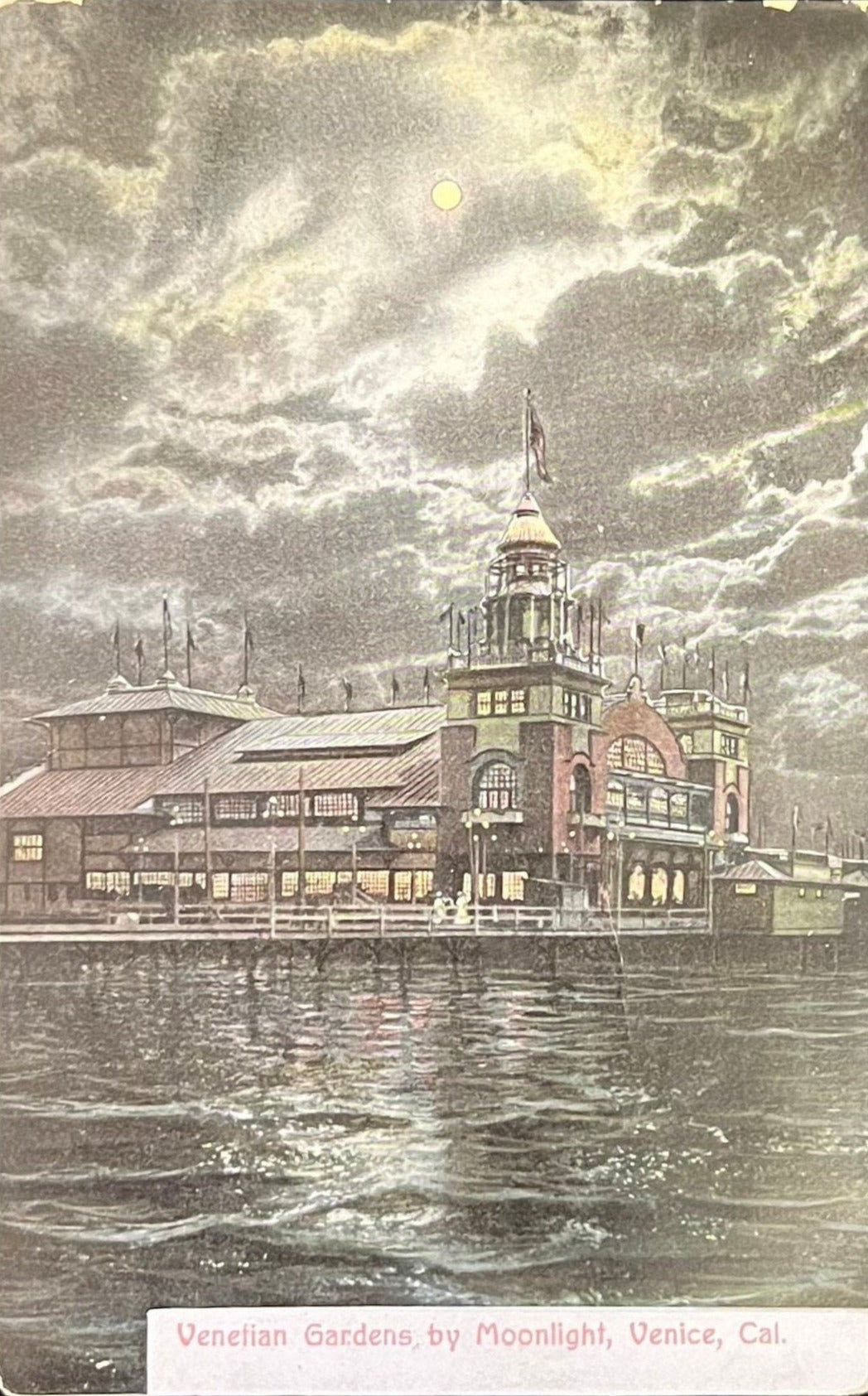Front: Photo of the Venetian Gardens under the moonlight in Venice California.