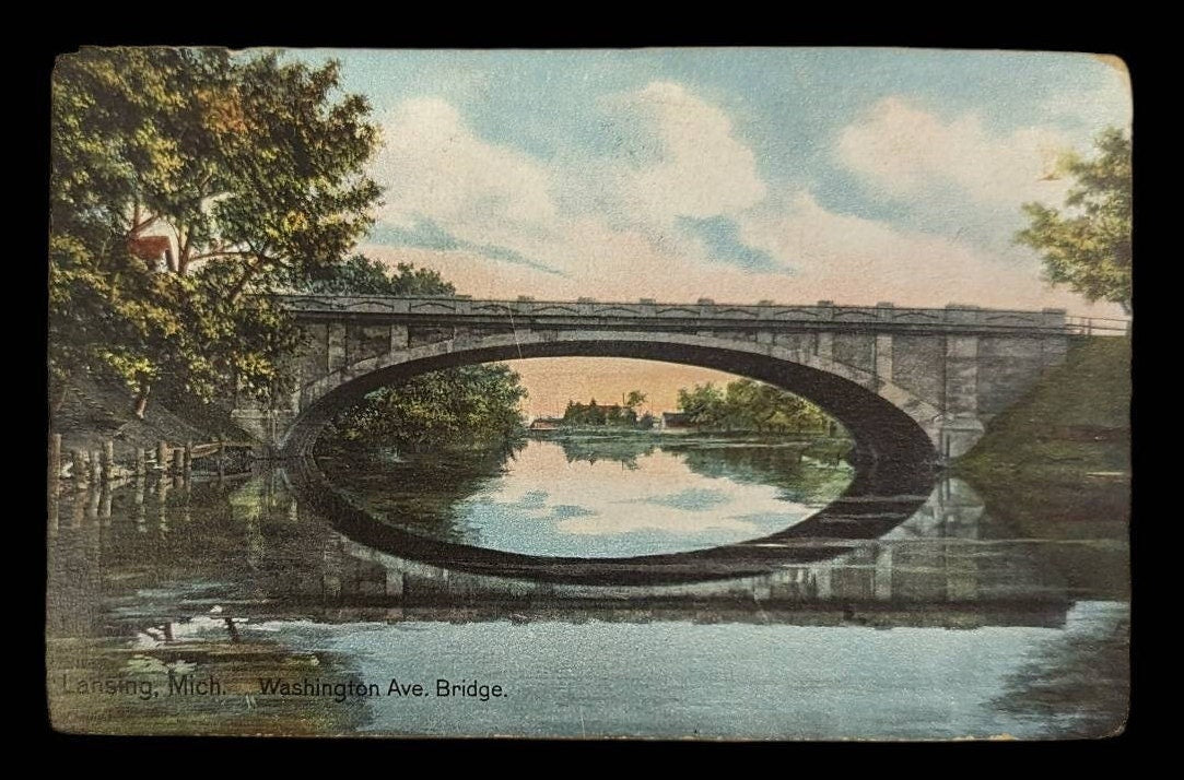 Washington Avenue Bridge - Lansing, Michigan - Vintage 1910 Postcard