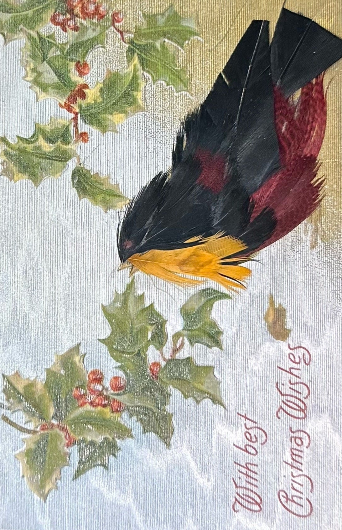 With best Christmas Wishes - Vintage Postcard With Bird Made of Real Feathers (RARE find)
