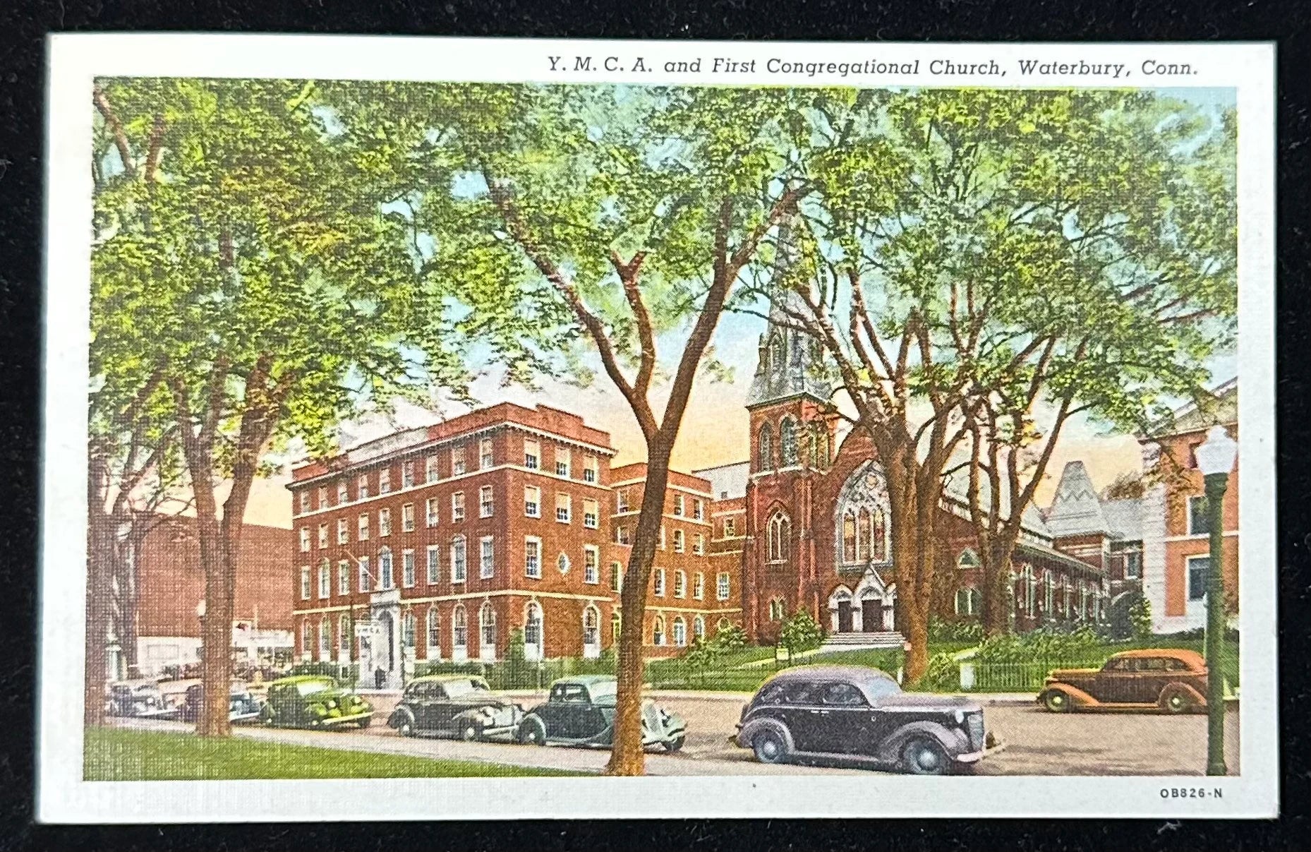 Y.M.C.A. And First Congregational Church, Waterbury, Connecticut - Linen Vintage Postcard