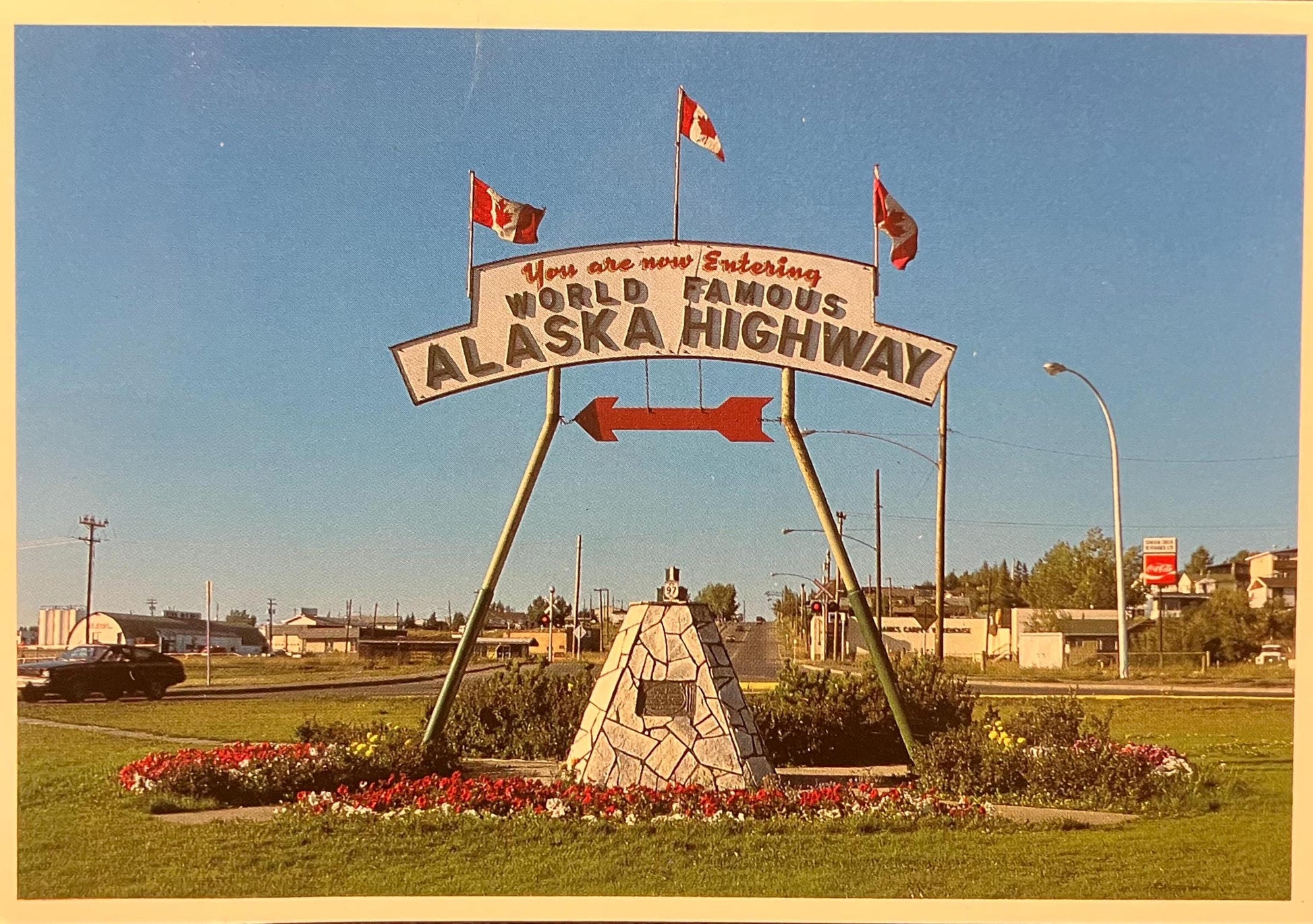 You are now Entering World Famous Alaska Highway - Photo: Earl L. Brown - Vintage Postcard