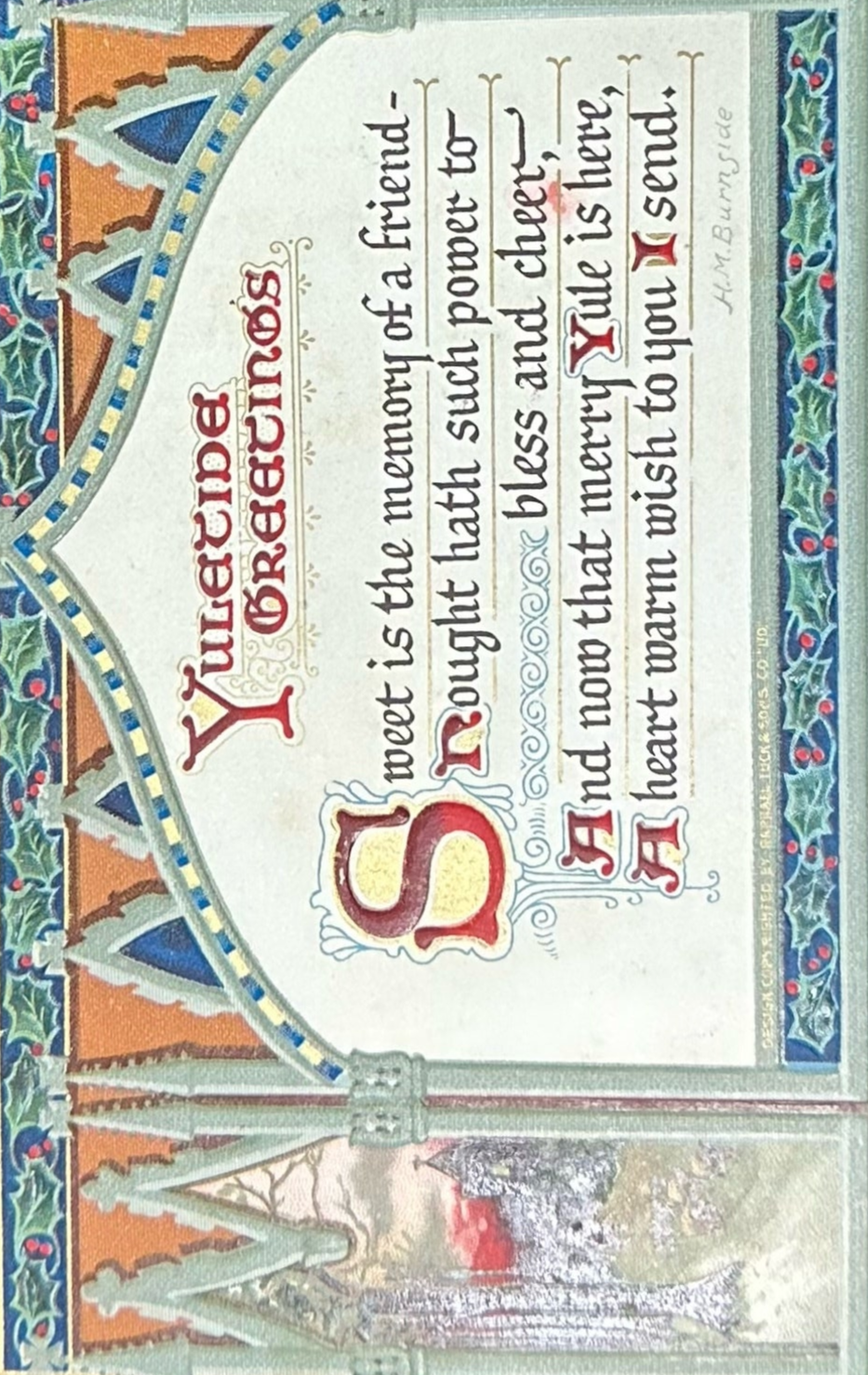 Yuletide Greetings - Vintage Tuck's Postcard