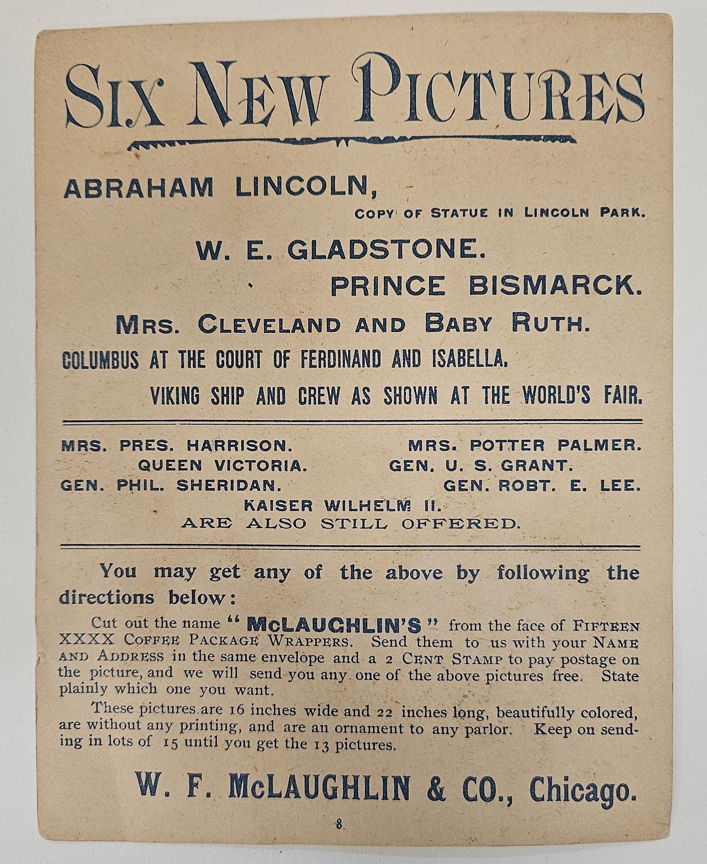 1893 Coronation Of Czar Of Russia Alexander The Third - McLaughlin's Coffee Trade Card- Trade Card Advertisement - Scrape book collectible