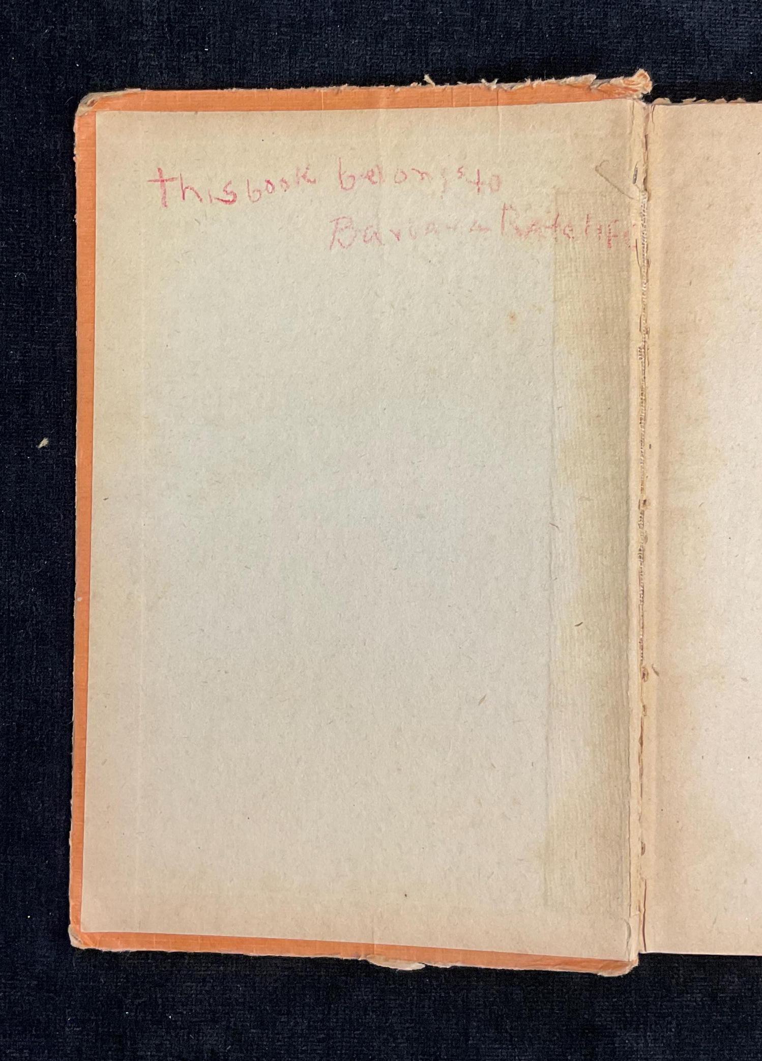 "This book belongs to Barbara Batelife" seems to be written on the inside front cover, potentially children's handwriting. In well read and loved condition. The cover corners and spine show wear and have rough edges and the spine is coming loose. We do not repair vintage books, we sell as found.