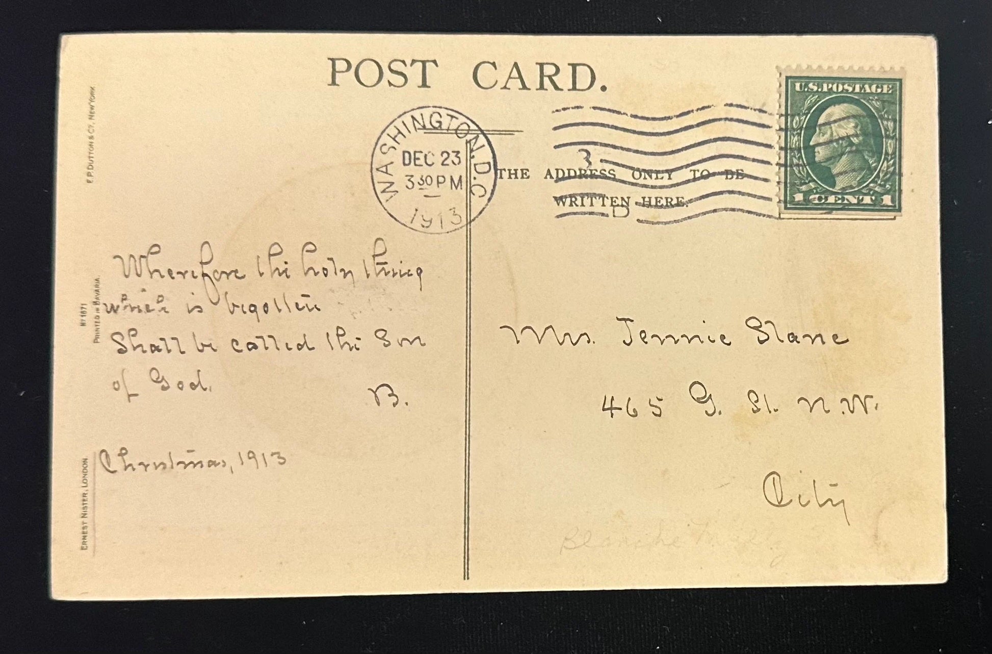 Mailed: posted on December 23RD, 1913 from Washington, D.C with a green 1-cent George Washington stamp