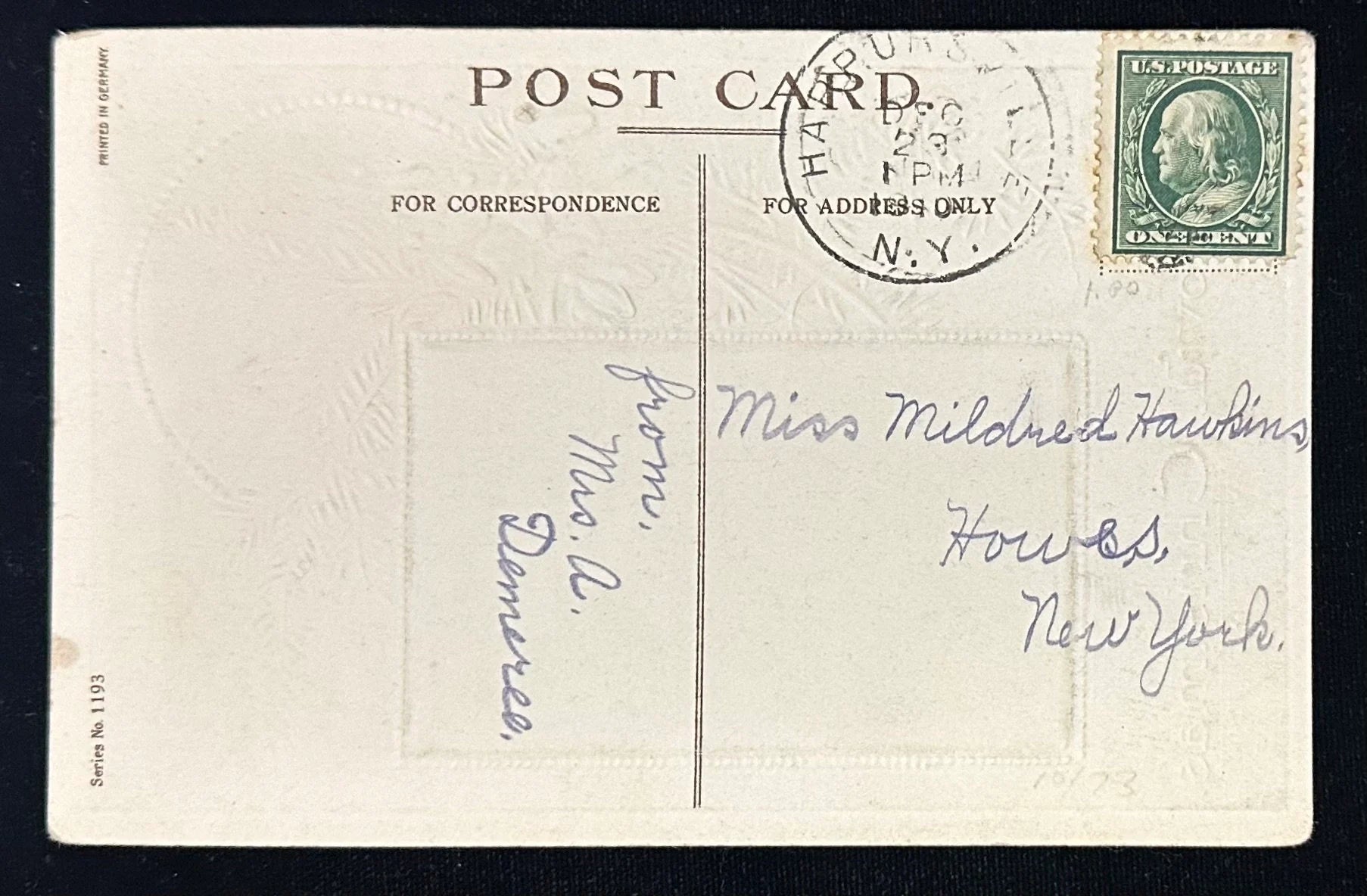 Mailed: Posted on December 23rd, 1910 from New York with a green 1-cent Ben Franklin stamp