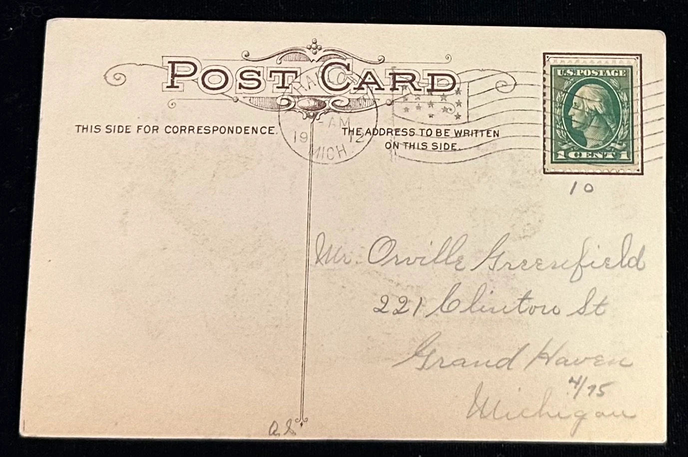 Mailed: Posted on December 25th, 1912 from Charlotte, Michigan with a green 1-cent George Washington stamp