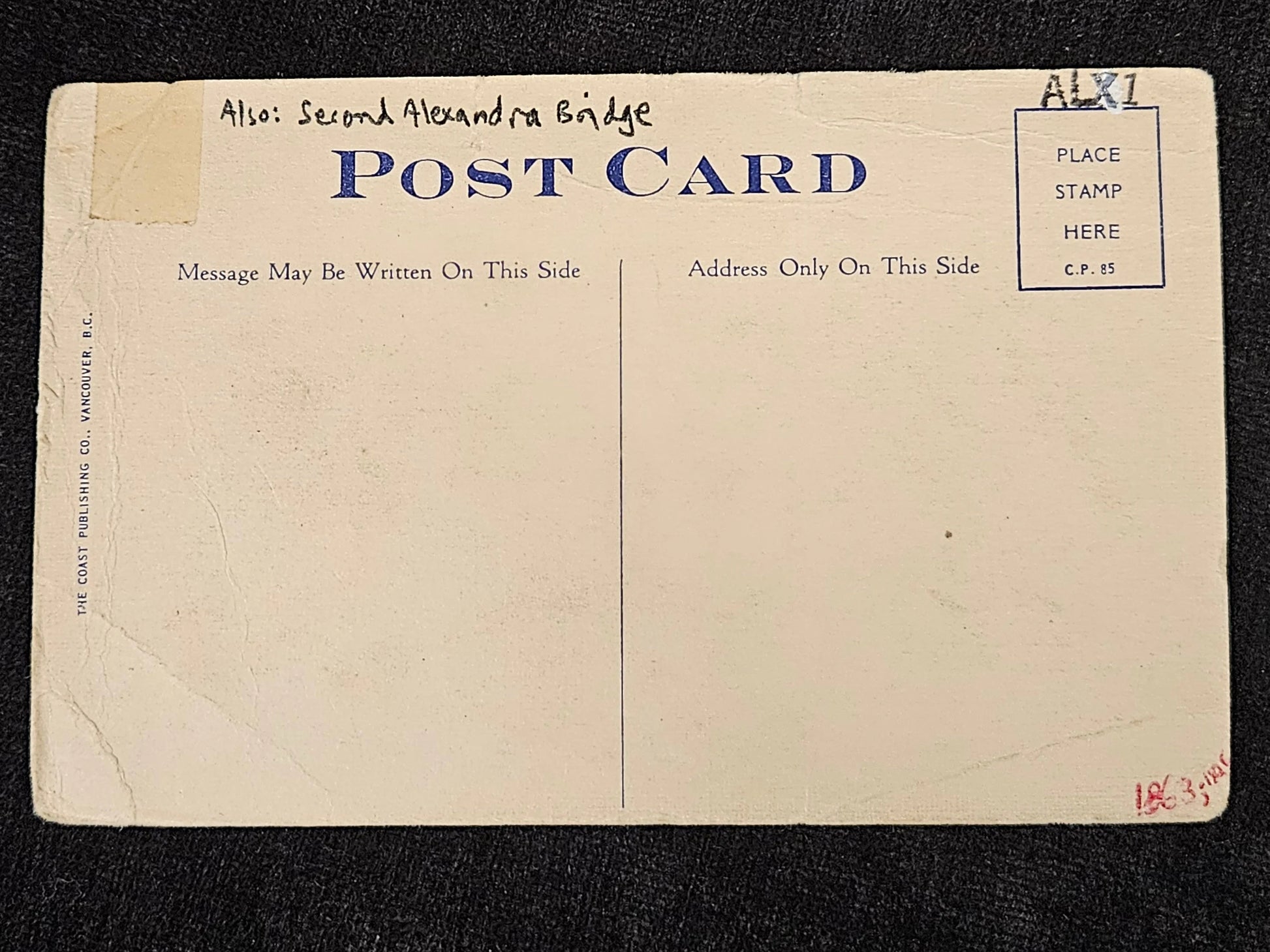 Alexandria Bridge Fraser Canyon British Columbia Canada Flowering Blossom Trees Drawing. Vintage Art Postcard