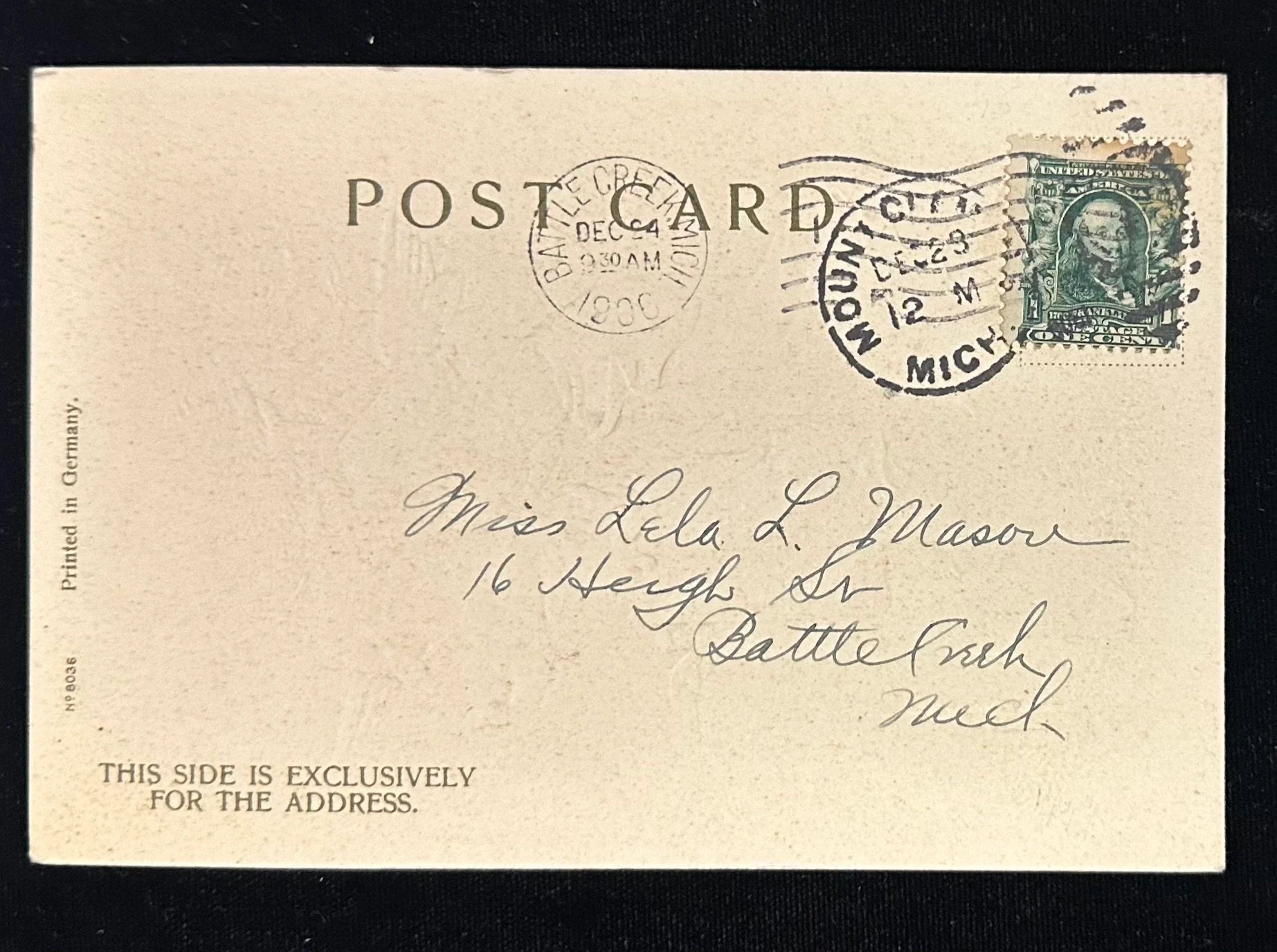 Mailed: Posted on December 24th, 1906 from Battle Creek, Michigan with a green Ben Franklin Stamp