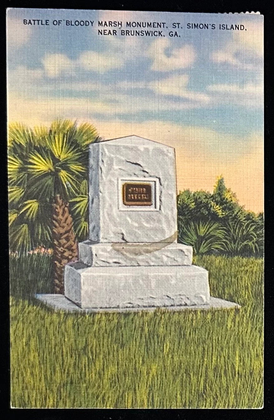 Battle of Bloody Marsh Monument - St. Simon's Island - Brunswick, Georgia - Vintage Linen Postcard