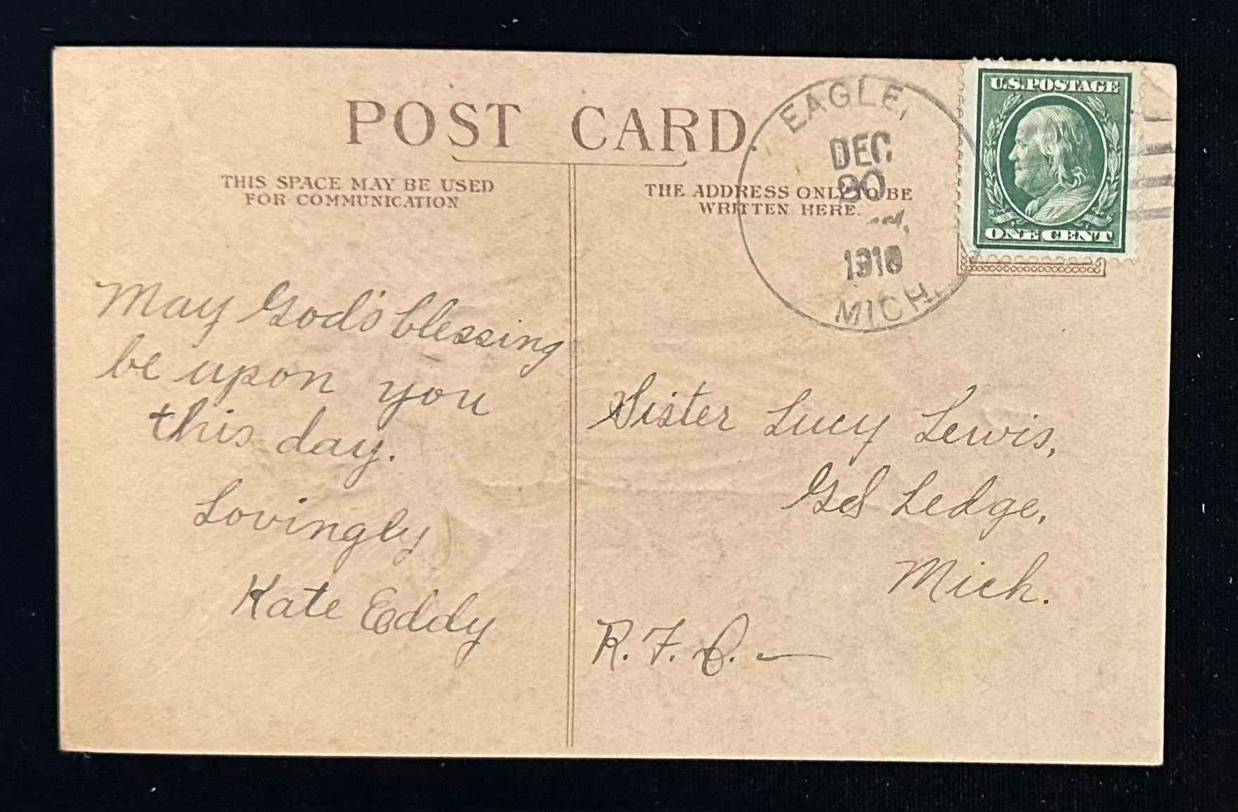 Mailed: Posted on December 20th, 1916 from Eagle, Michigan with a green 1cent Ben Franklin stamp