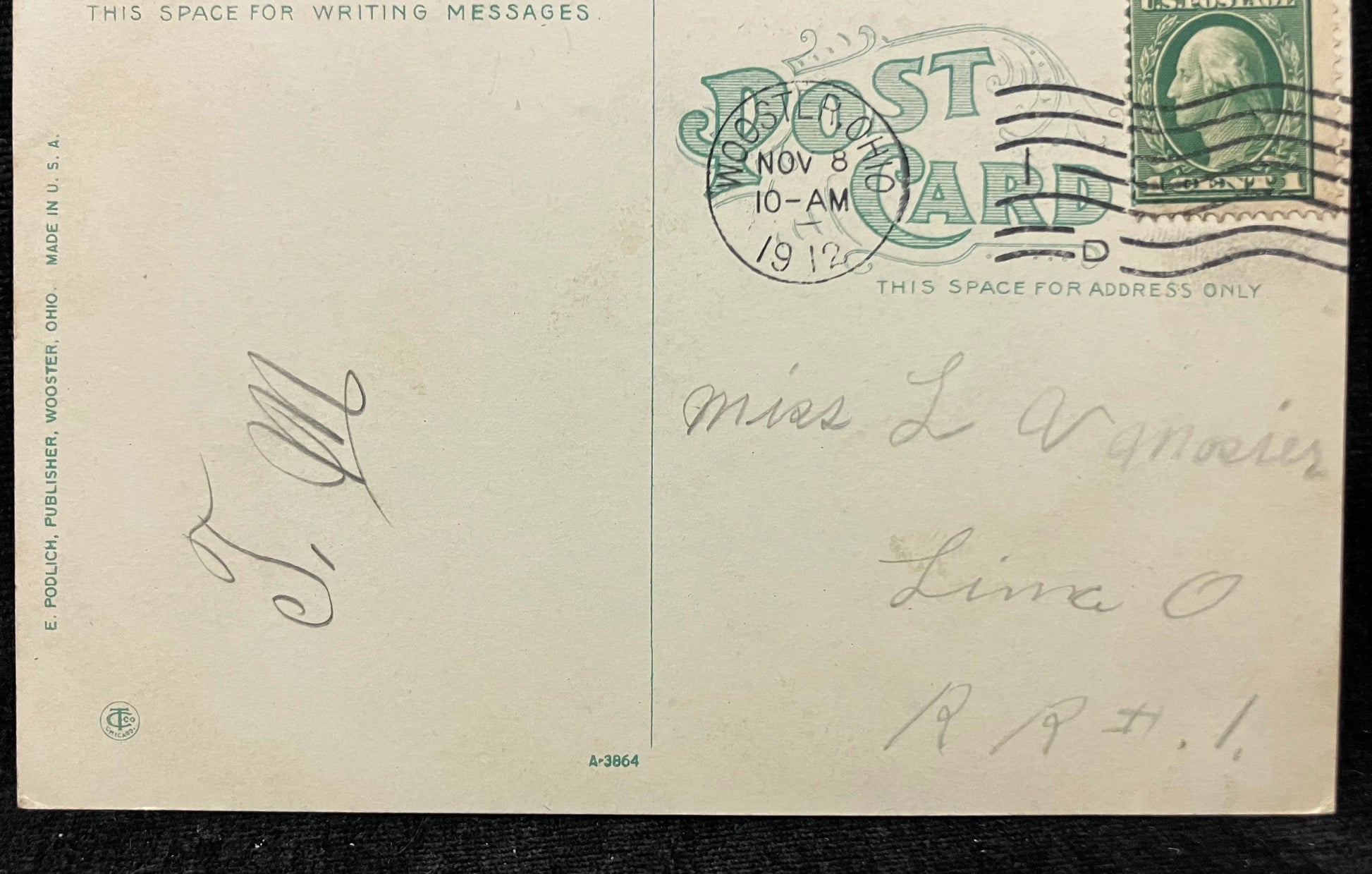 Mailed: Postmark 1912, green one cent George Washington stamp