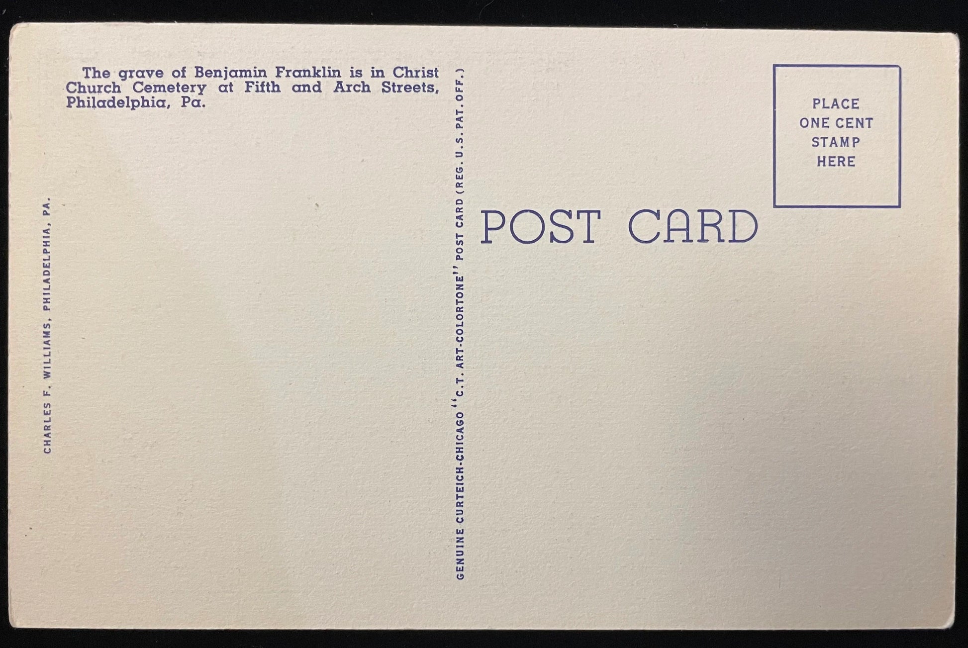 Benjamin Franklin's Grave, Christ Church Cemetery, Philadelphia, Pennsylvania - Vintage Ben Franklin Postcard