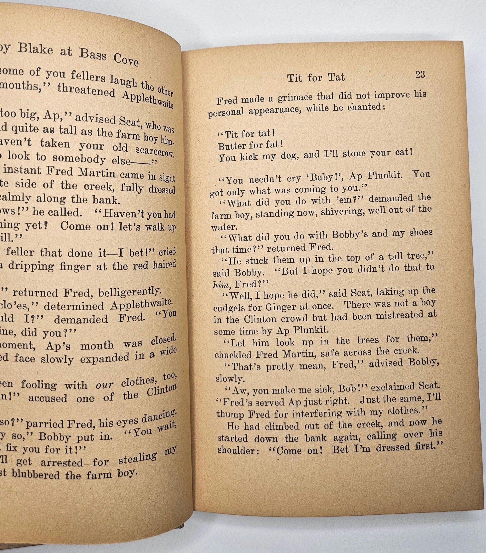 Bobby Blake at Bass Cove by Frank A. Warner is an adventure story about Bobby's search for treasure. Nice young man's story book from about 1912