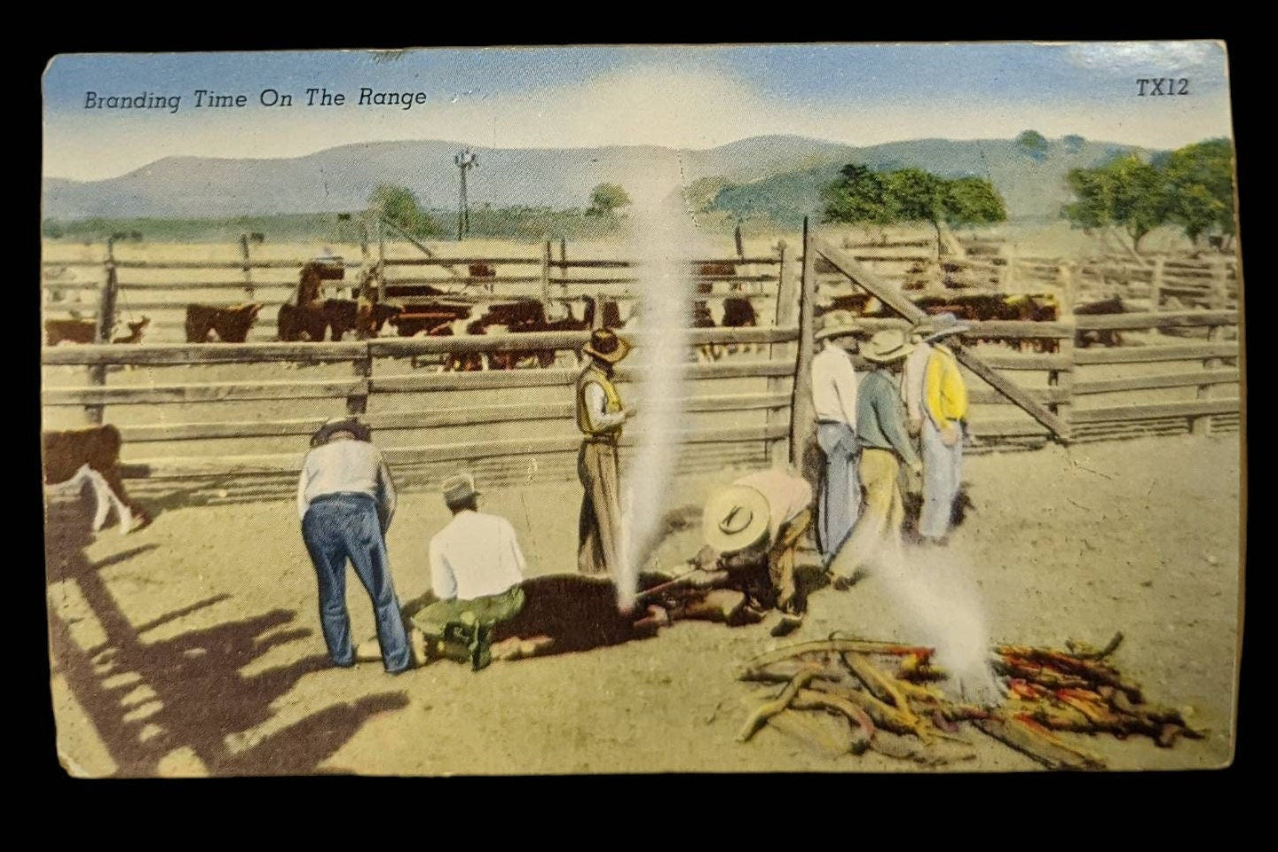 Branding Time on the Range in New Mexico - Vintage Texas Postcard