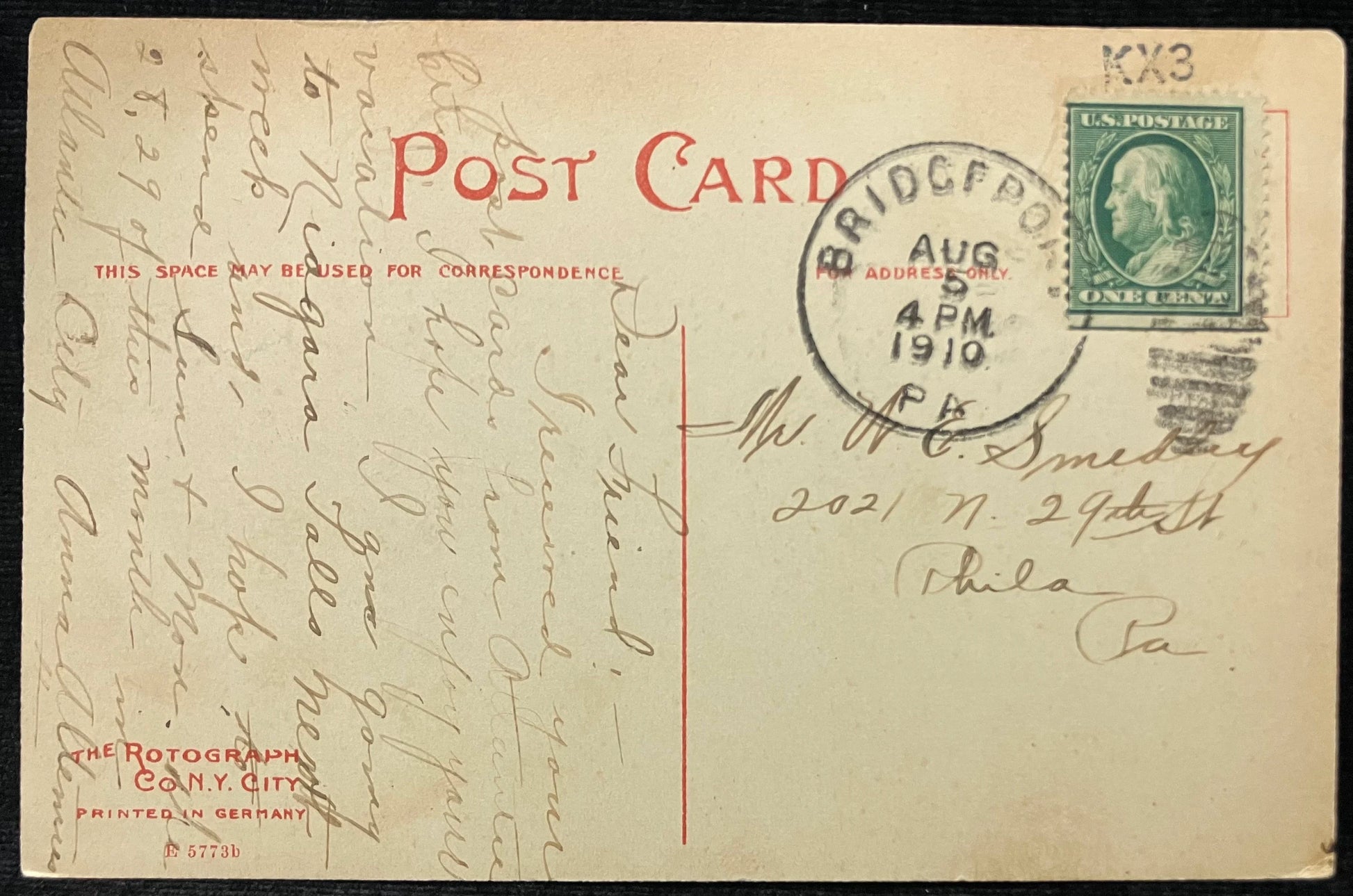 Mailed: Postmark on August 5, 1910 with a green one cent Benjamin Franklin stamp