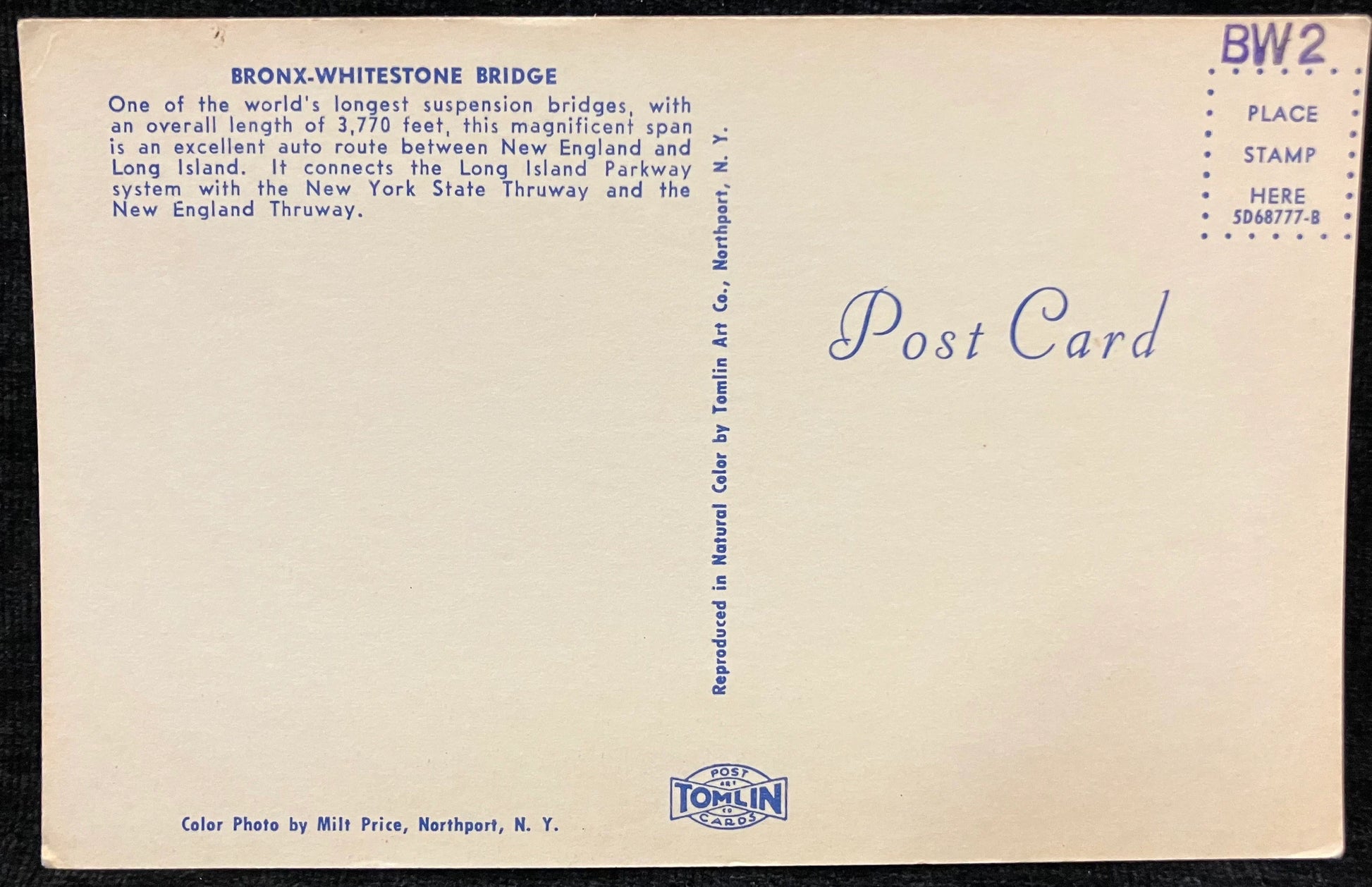 Bronx-Whitestone Bridge in New York - Photo by Milt Price - Vintage NYC Bridge Postcard