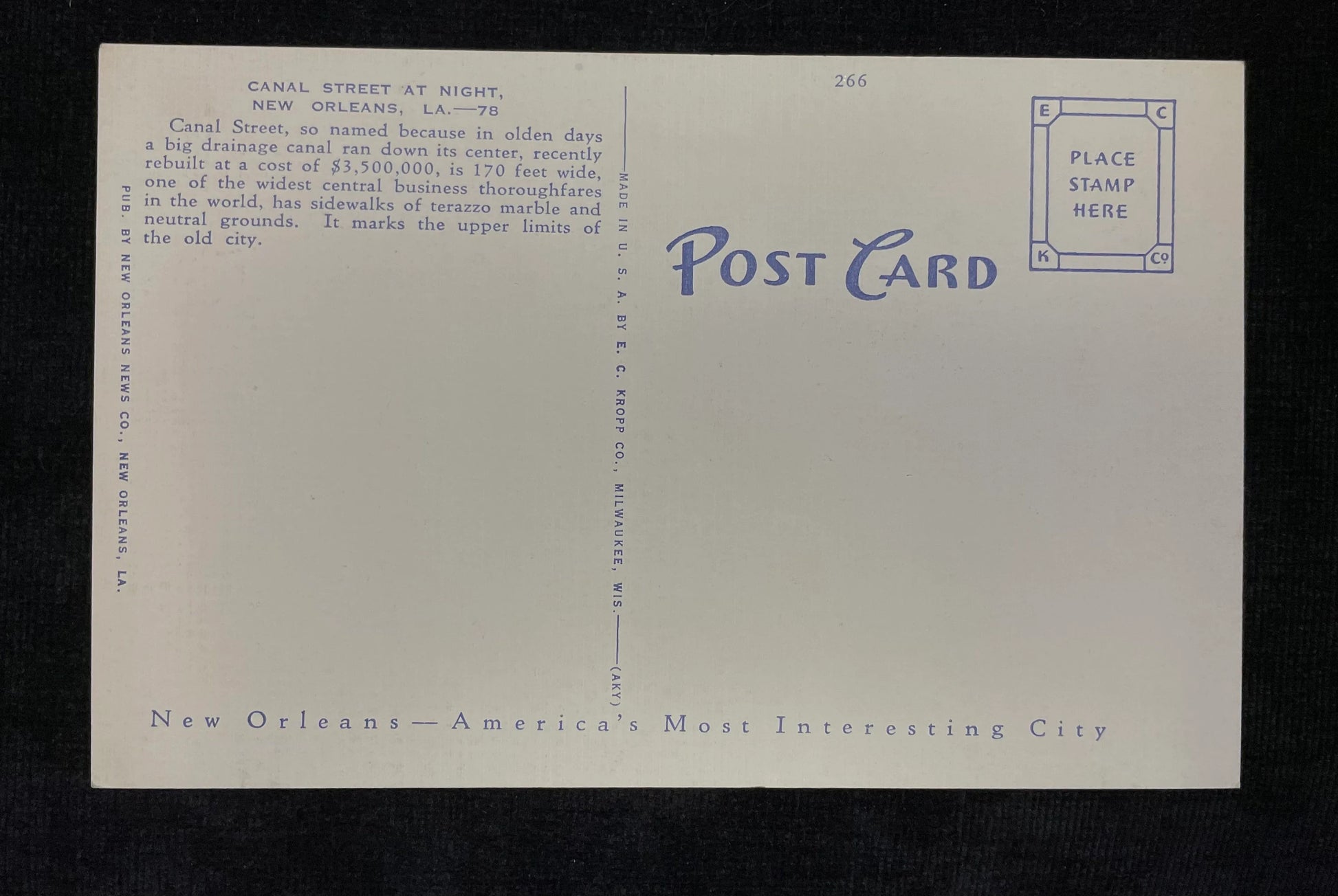 Canal Street at Night, New Orleans, Louisiana 1940s - Vintage New Orleans Postcard - Vintage Nighttime Postcard -