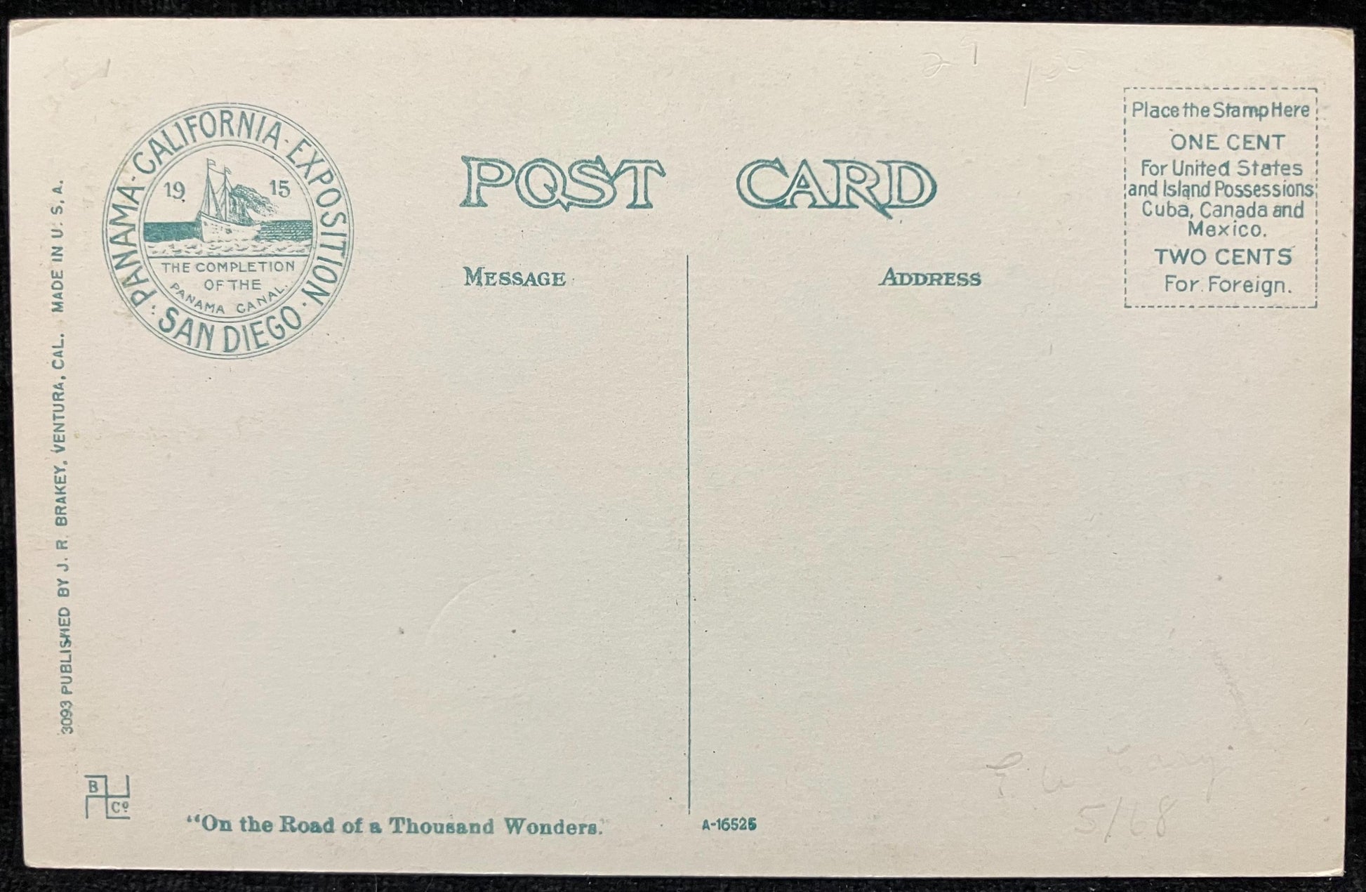Back: Panama - California - Exposition - San Diego The Completion of the Panama Canal 1915