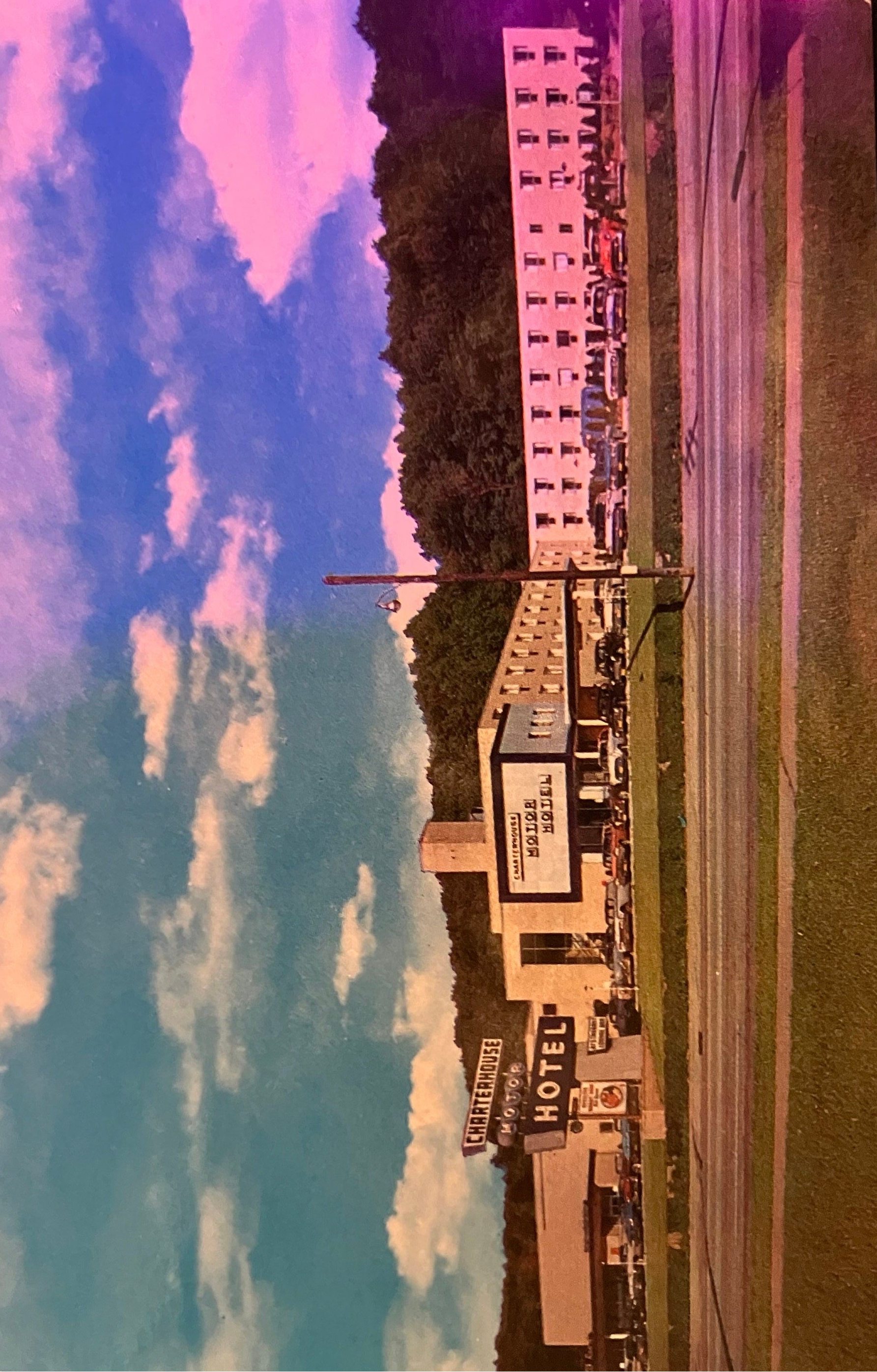 On front: A photo of the Charterhouse Motor Hotel in Euclid (Cleveland), Ohio