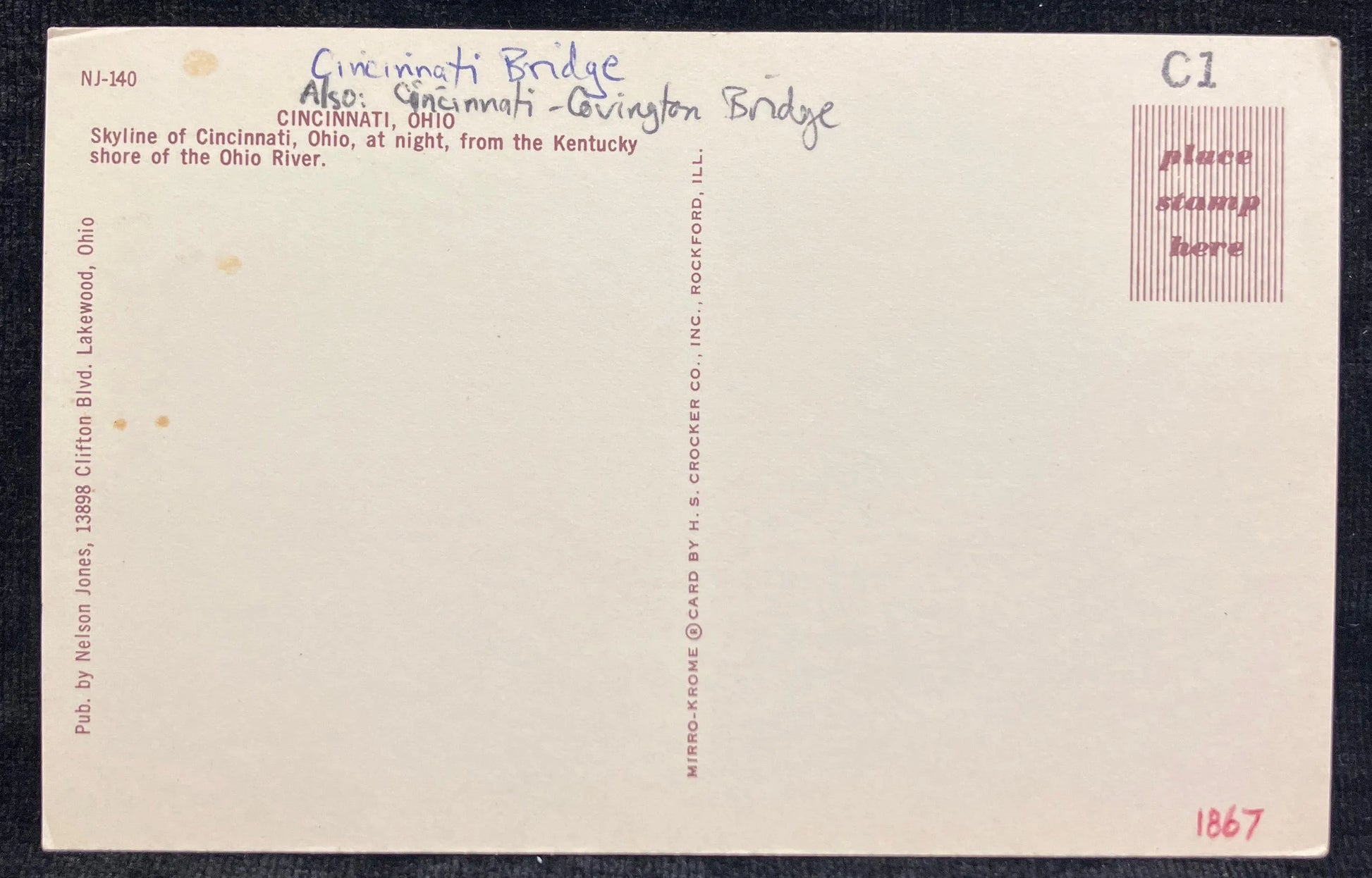 Writing: Cincinnati Bridge Also: Cincinnati-Covington Bridge C1 1867