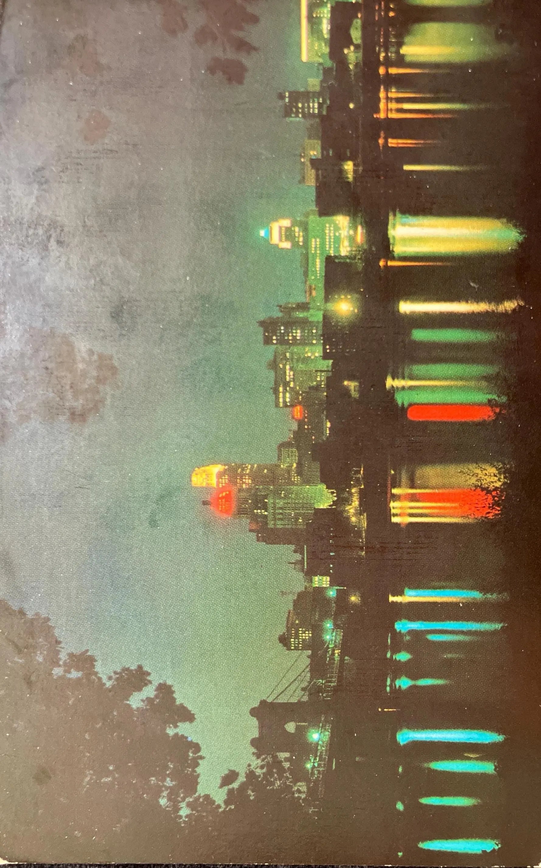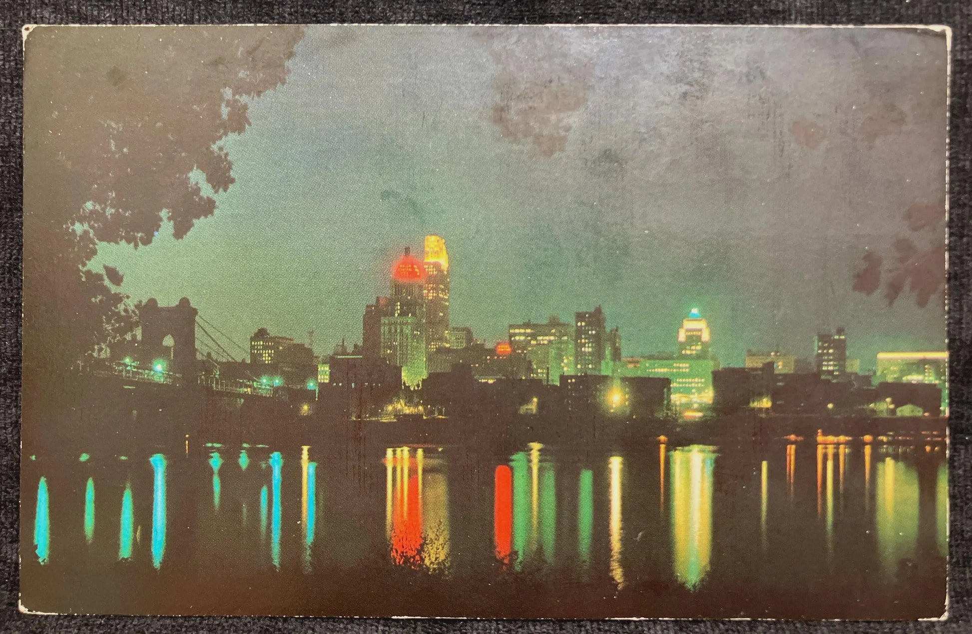 Cincinnati, Ohio, - Skyline at night - Vintage Postcard