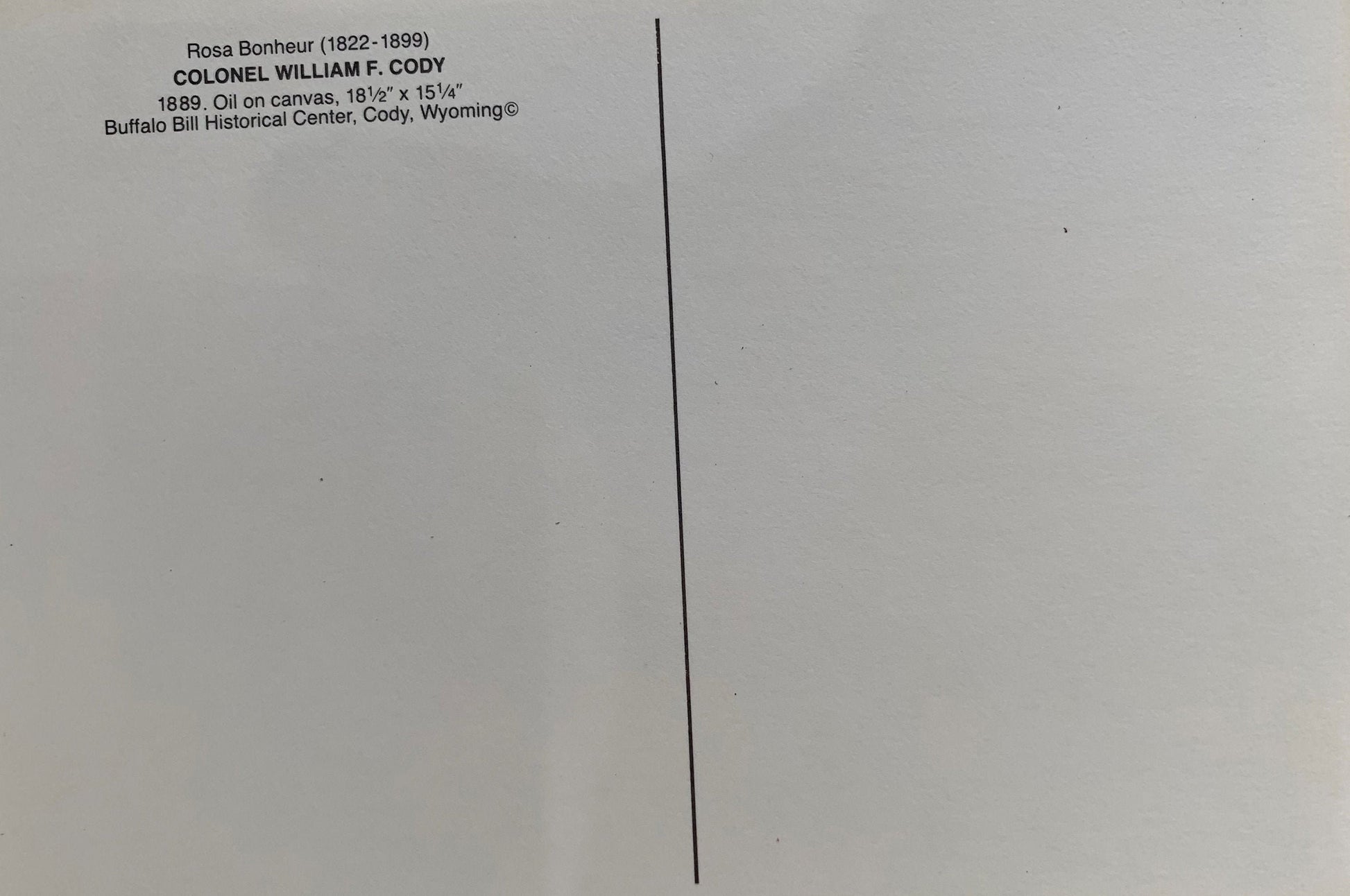 Rosa Bonheur (1822-1899) Colonel William F. Cody 1889. Oil on canvas, 18 1/2'' x 15 1/4'' Buffalo Bill Historical Center, Cody, Wyoming