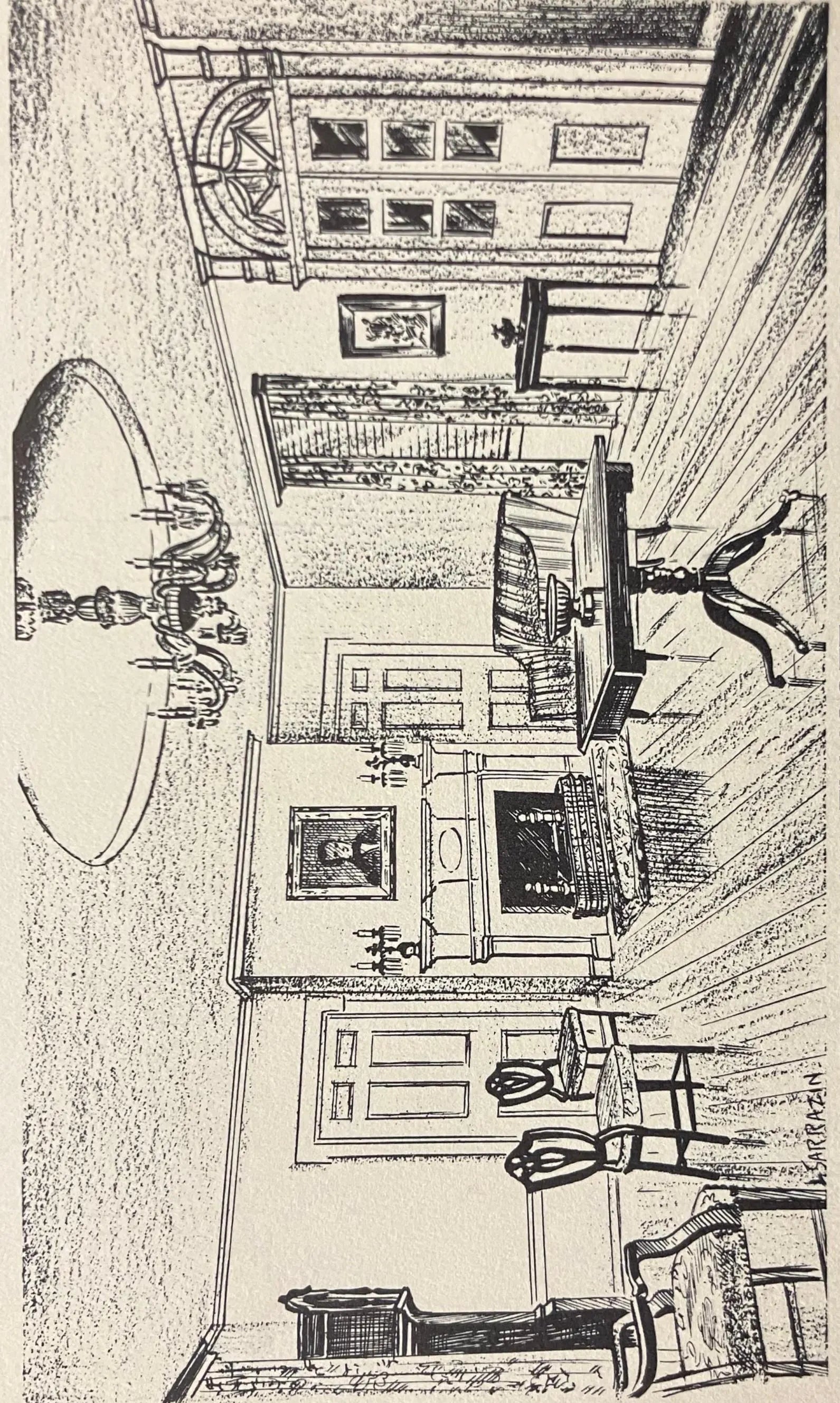 Back: Ballroom of Connelly’s Tavern on Ellicott Hill. Built prior to 1795 when Spain ruled the Natchez territory. While pirates, gamblers, hardly woodsmen, itinerant peddlers, fought and drank below stairs, in this elegant salon above where entertained the famous men of the day - Major Isaac Guion, Louis Philippe of France, Aaron Burr, Blennerhassett, Philip Nolan.