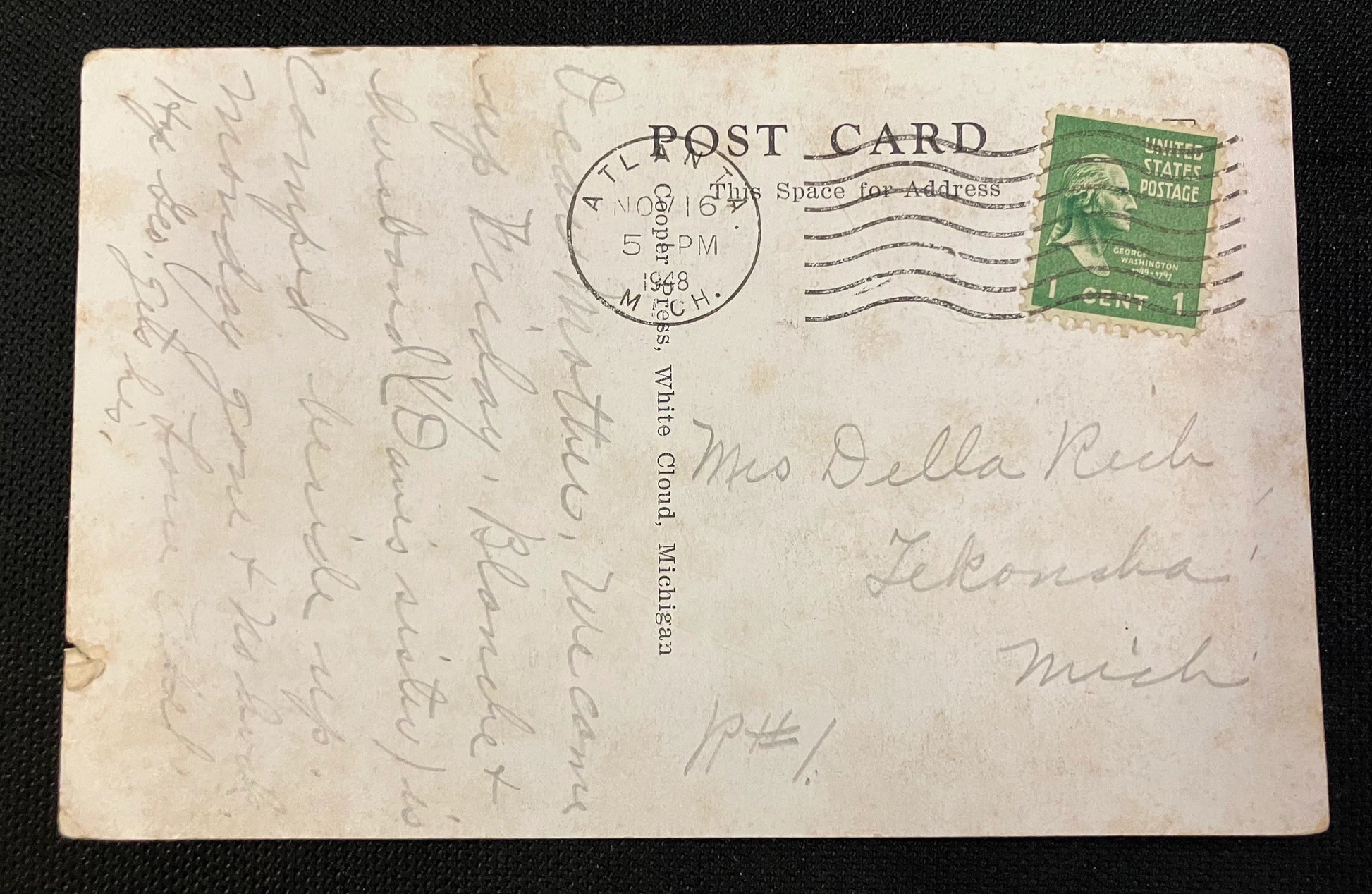 Mailed: Posted on November 16, 1948 from Atlanta, Michigan with a green 1-cent George Washington stamp