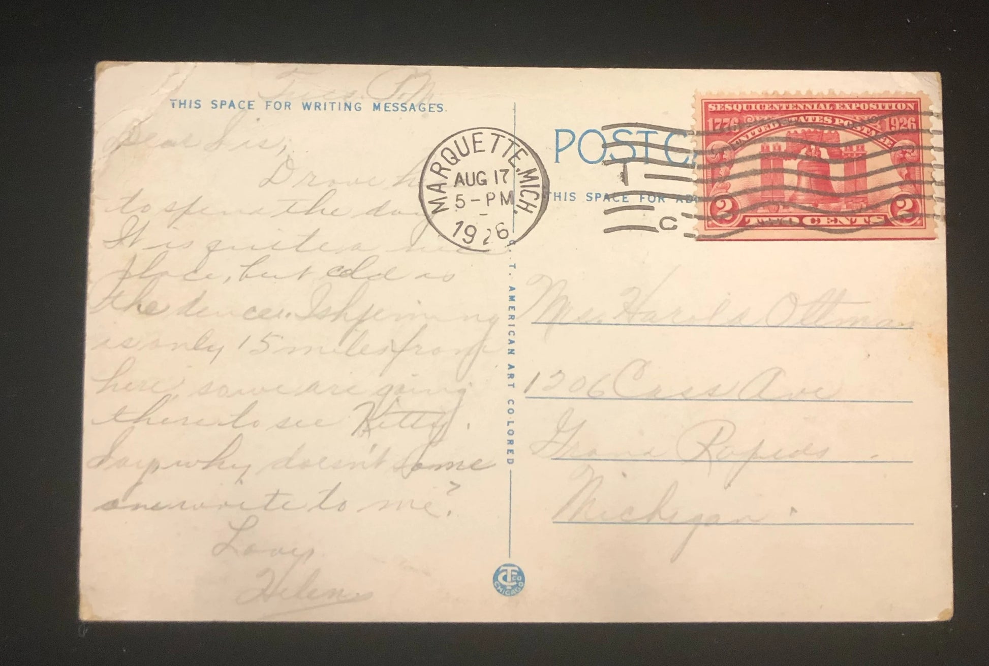 Back copy: C.T. American Art Colored Posted Aug 17. 1926
