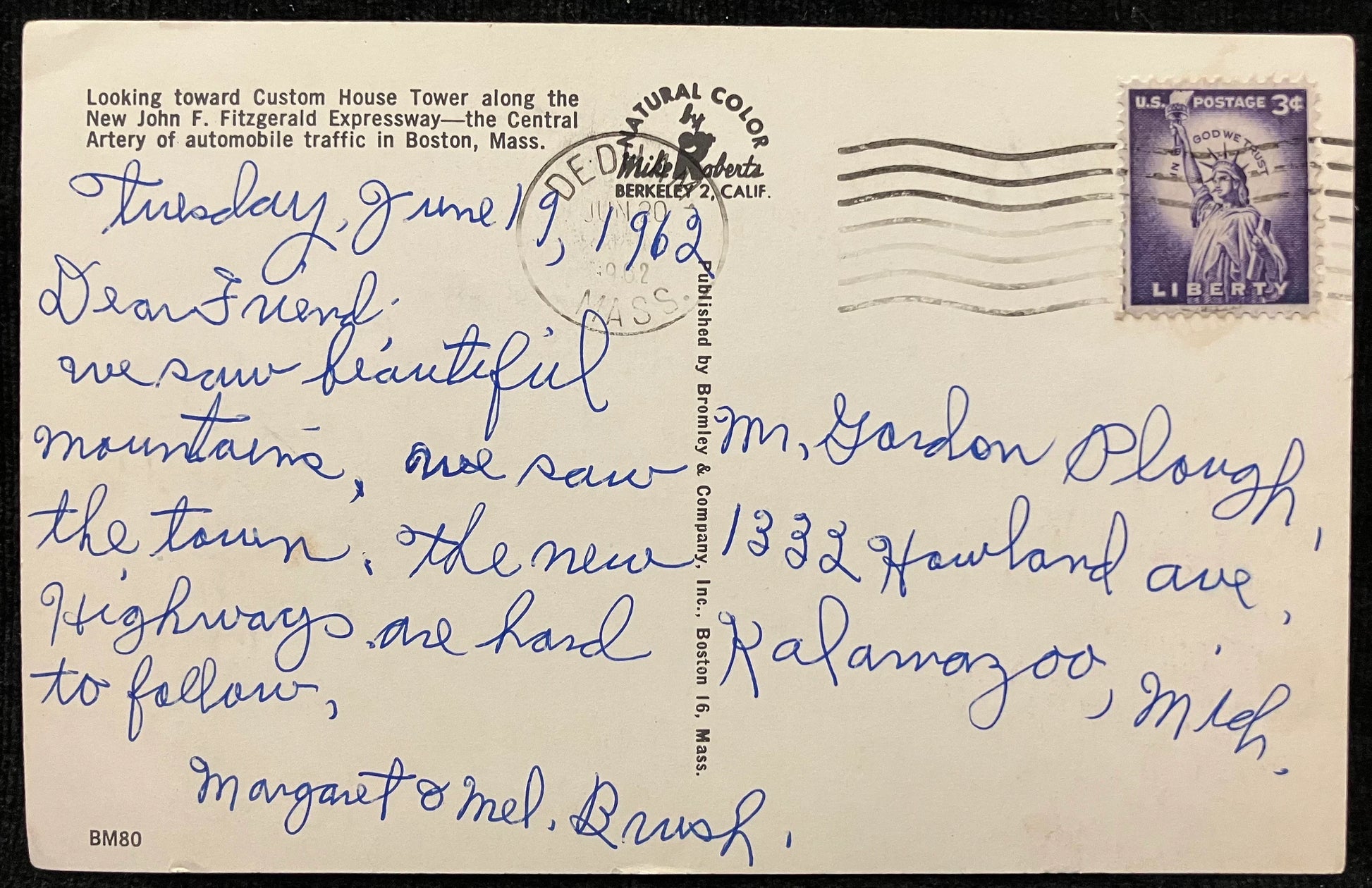 Mailed: Postmark on Jun 20, 1962, from Mass. with a purple three-cent Lady Liberty stamp
