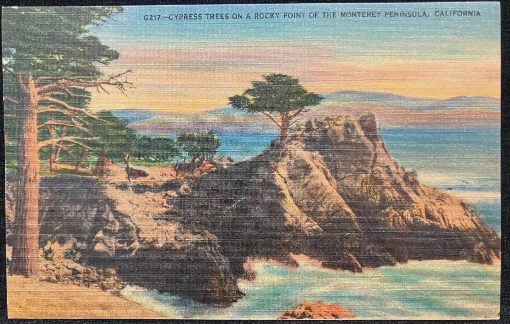 Cypress Trees on a Rocky Point of the Monterey Peninsula, California - Vintage Postcard