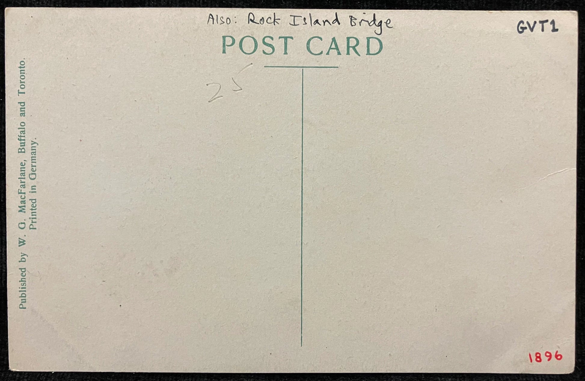 On front: Davenport, Ia. Government Bridge across the Mississippi River.