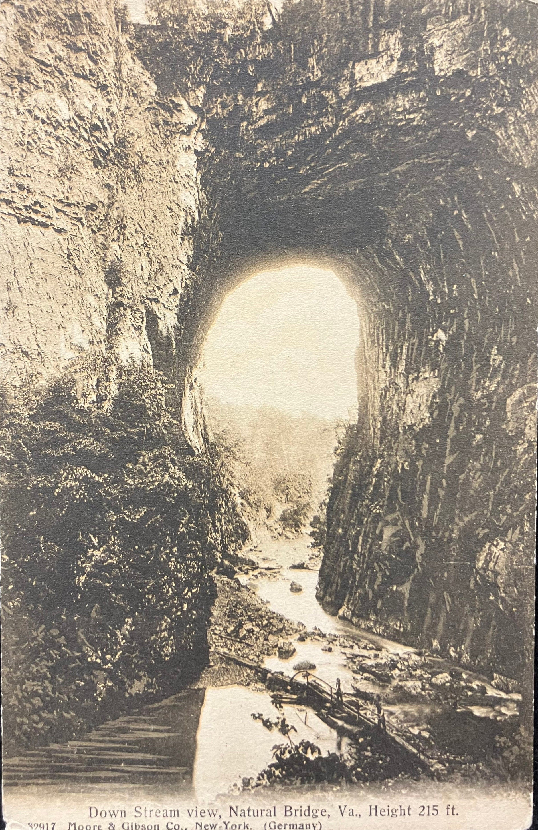 Down Stream view, Natural Bridge, Virginia, Height 215 ft. - Moore & Gibson Co., New-York. (Germany) - Vintage Postcard