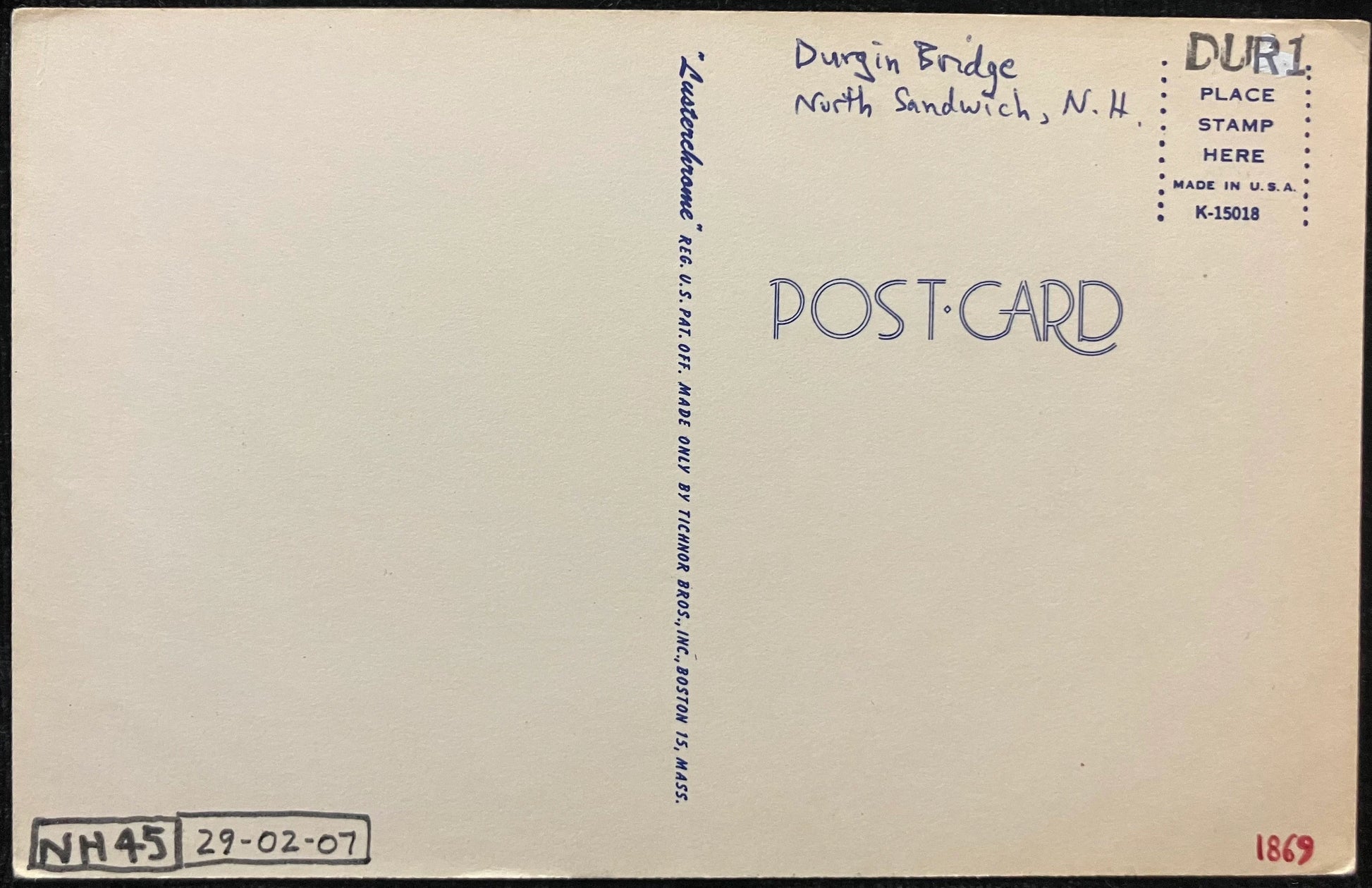 On front: A photo of Durgin Bridge in North Sandwich, N. H.