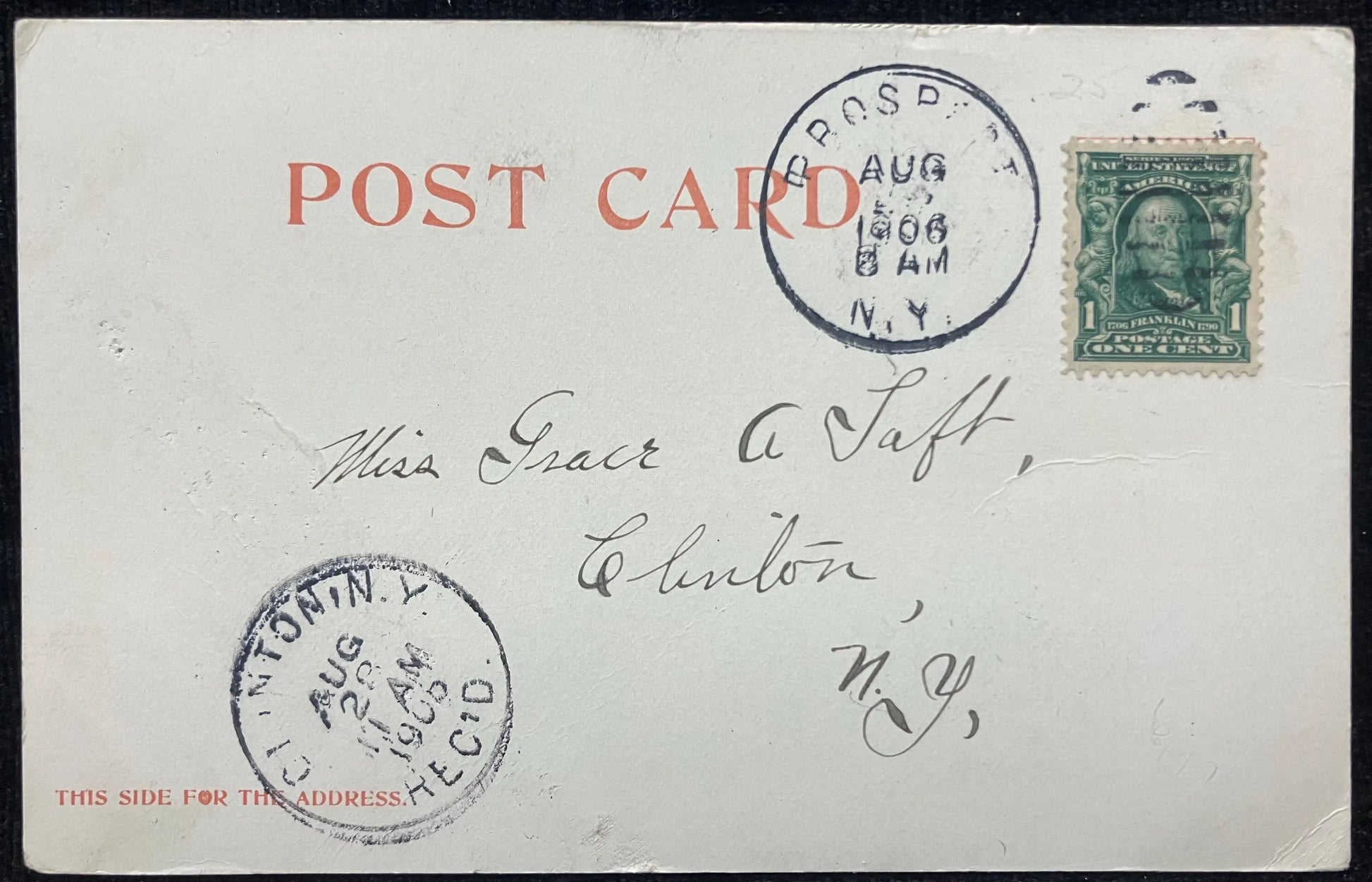Mailed: Postmark: 1906 green one cent Benjamin Franklin