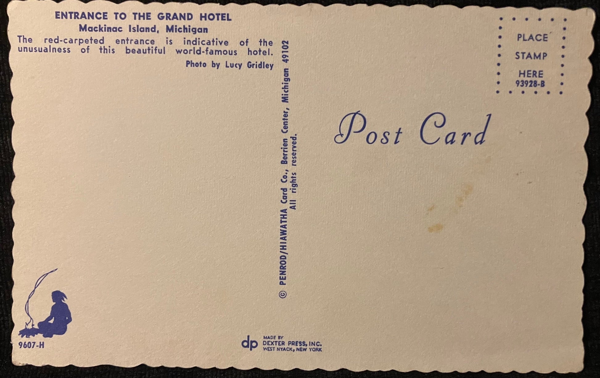 front: Entrance to the Grand Hotel on Mackinac Island, Michigan