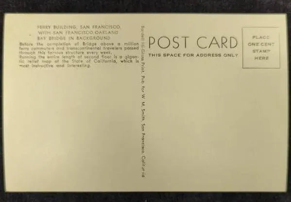 Ferry Building, San Francisco in late 1930s - Vintage San Francisco California Postcard - San Francisco Bay Bridge in Background