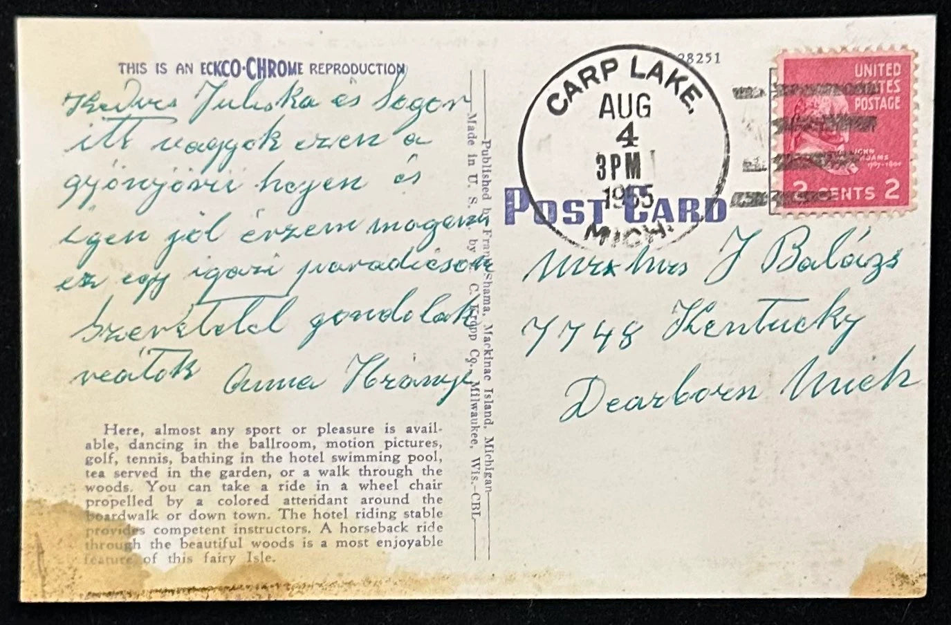 Grand Hotel and Grounds, Mackinac Island, Michigan - Vintage 1950s Postcard