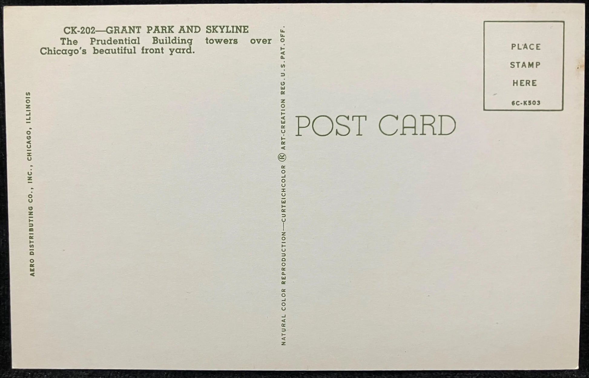 Grant Park and Skyline - Chicago, Illinois - Vintage Park Postcard