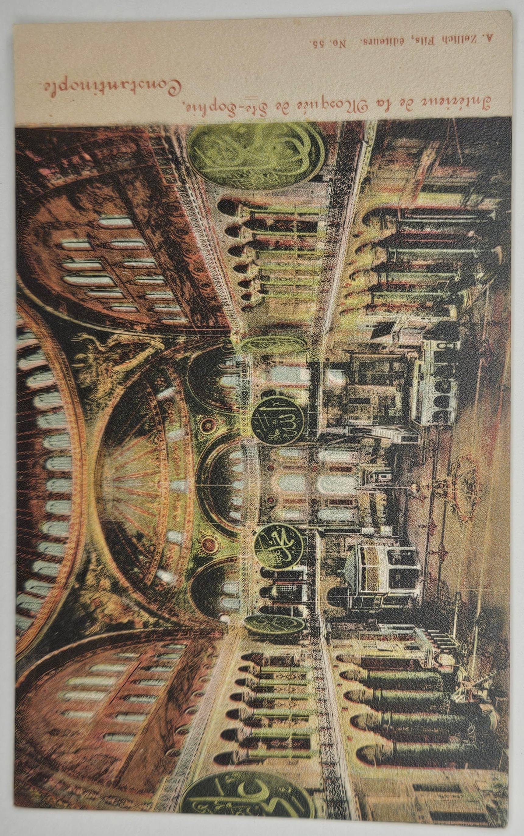Hagia Sofia Mosque Interior- Constantinople Turkey - Pre 1907 Postcard - back address only - Hand Tinted Color