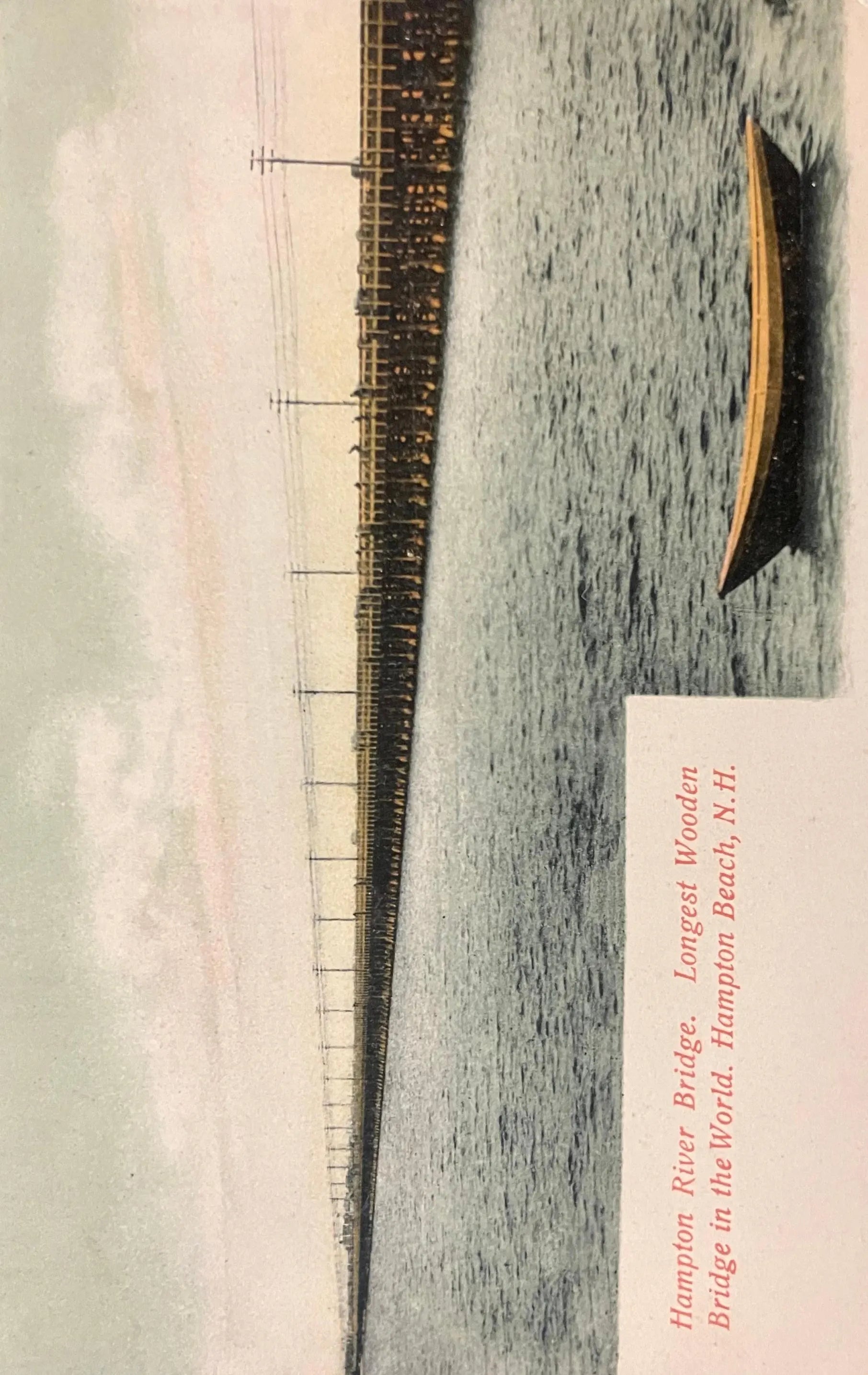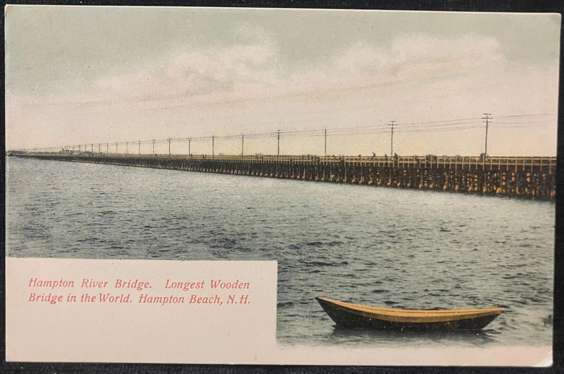 On front: Hampton River Bridge. Longest Wooden Bridge in the World. Hampton Beach, N. H.