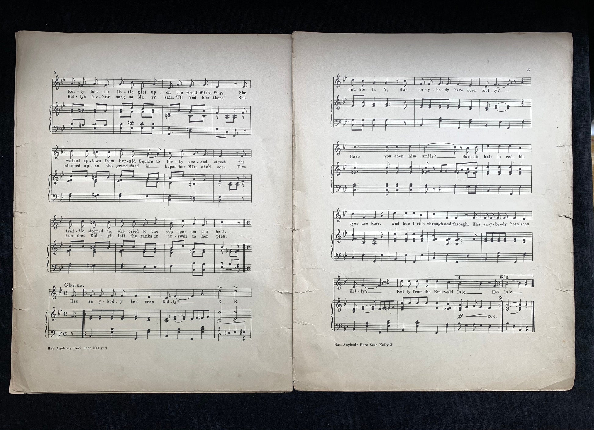 "Has Anybody Here Seen Kelly?" - Written and composed by C.W. Murphy and Will Letters. Look closely at pictures for detailed condition. The spine is not in tact on this piece, each page has separated from the others over time, but all pages are here.