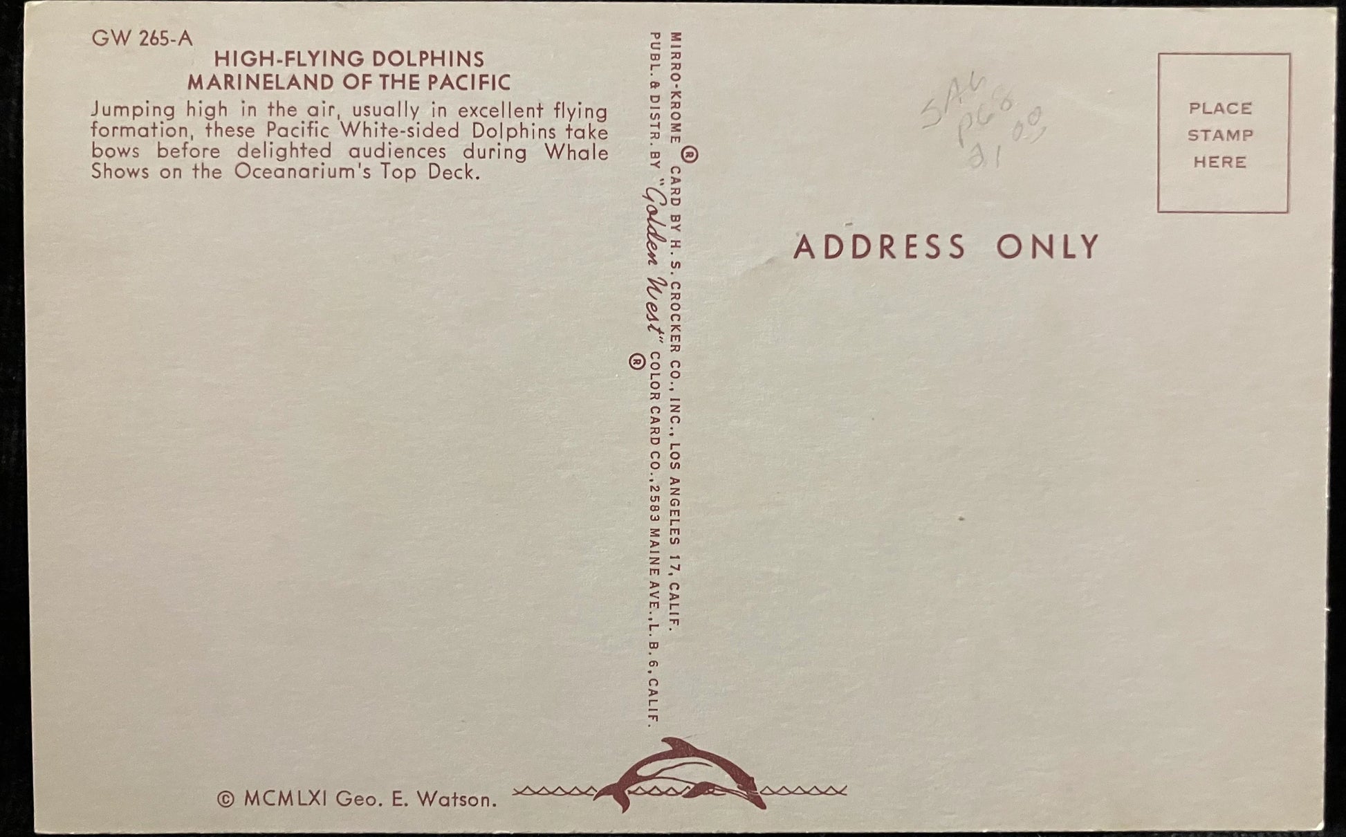 High-Flying Dolphins at Marineland of the Pacific, California - Photo by Geo E. Watson - Vintage Marine Life Postcard